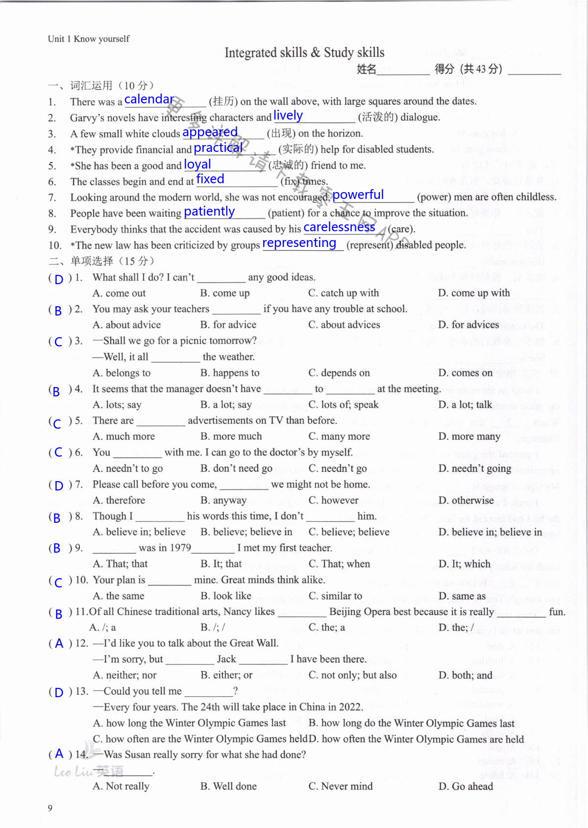 注:目前有些书本章节名称可能整理的还不是很完善,但都是按照顺序排列的,请同学们按照顺序仔细查找。练习册 2021年LeoLiu中学英语九年级上册译林版 答案主要是用来给同学们做完题方便对答案用的,请勿直接抄袭。