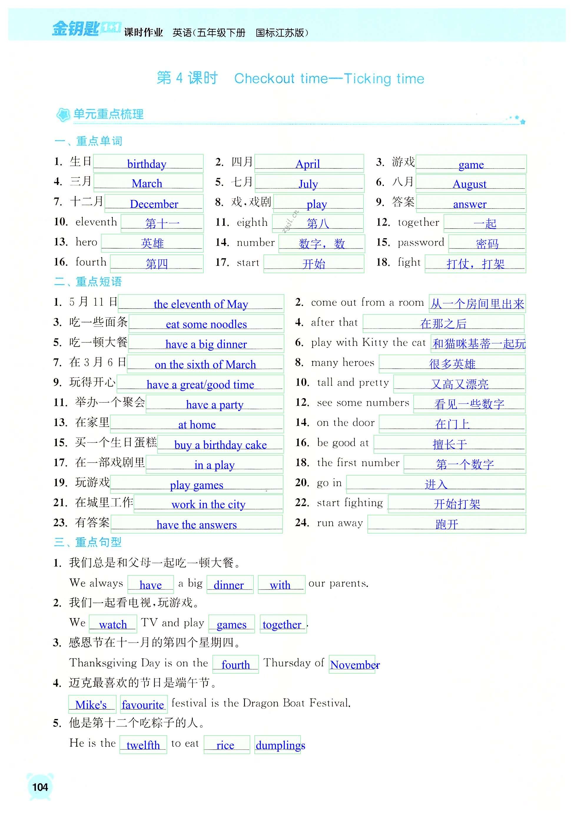 注:目前有些书本章节名称可能整理的还不是很完善,但都是按照顺序排列的,请同学们按照顺序仔细查找。练习册 2022年金钥匙1加1课时作业五年级英语下册江苏版 答案主要是用来给同学们做完题方便对答案用的,请勿直接抄袭。
