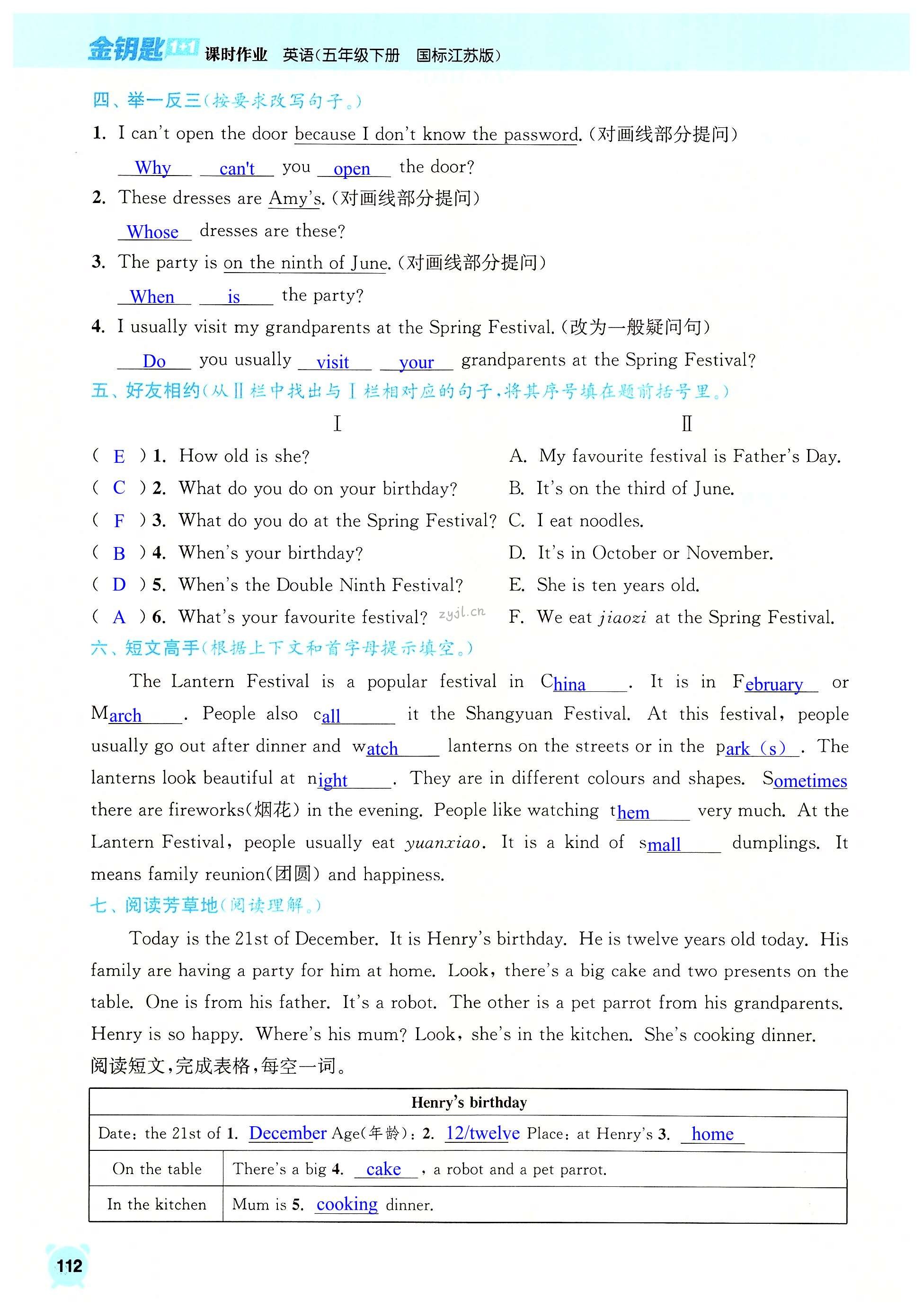 注:目前有些书本章节名称可能整理的还不是很完善,但都是按照顺序排列的,请同学们按照顺序仔细查找。练习册 2022年金钥匙1加1课时作业五年级英语下册江苏版 答案主要是用来给同学们做完题方便对答案用的,请勿直接抄袭。