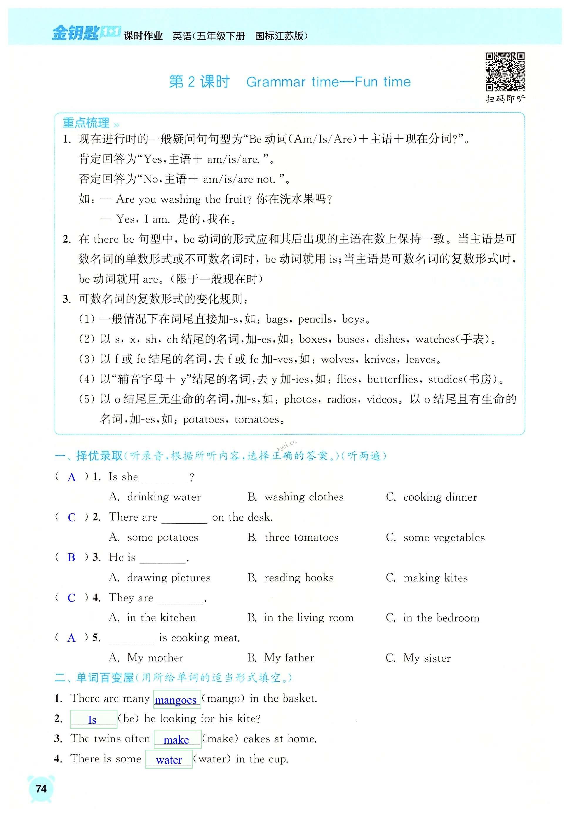 注:目前有些书本章节名称可能整理的还不是很完善,但都是按照顺序排列的,请同学们按照顺序仔细查找。练习册 2022年金钥匙1加1课时作业五年级英语下册江苏版 答案主要是用来给同学们做完题方便对答案用的,请勿直接抄袭。