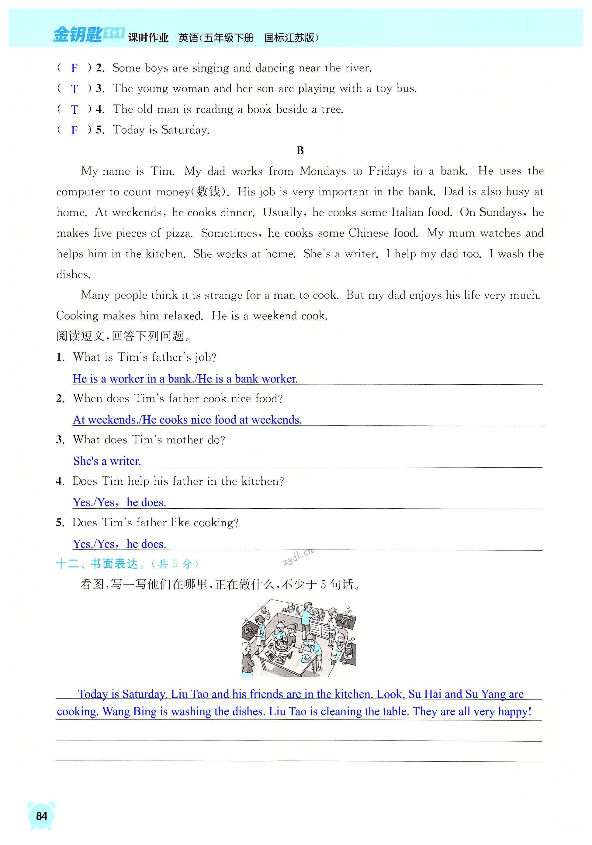 注:目前有些书本章节名称可能整理的还不是很完善,但都是按照顺序排列的,请同学们按照顺序仔细查找。练习册 2022年金钥匙1加1课时作业五年级英语下册江苏版 答案主要是用来给同学们做完题方便对答案用的,请勿直接抄袭。