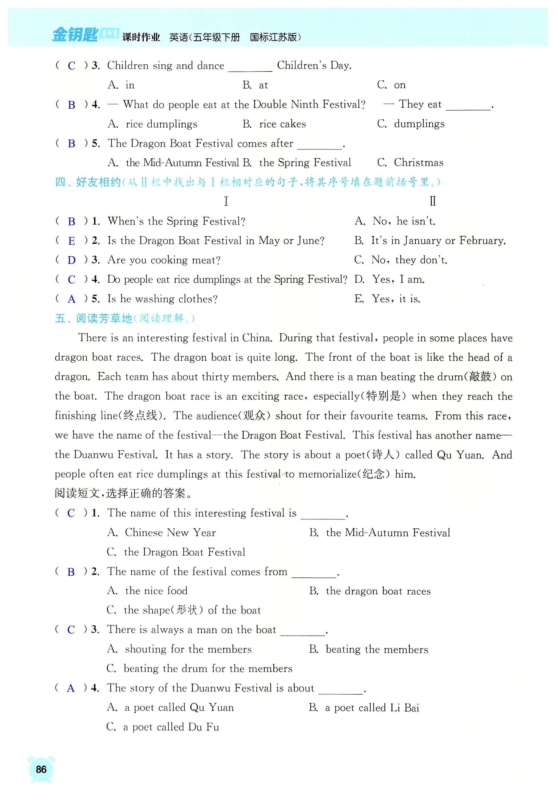 注:目前有些书本章节名称可能整理的还不是很完善,但都是按照顺序排列的,请同学们按照顺序仔细查找。练习册 2022年金钥匙1加1课时作业五年级英语下册江苏版 答案主要是用来给同学们做完题方便对答案用的,请勿直接抄袭。