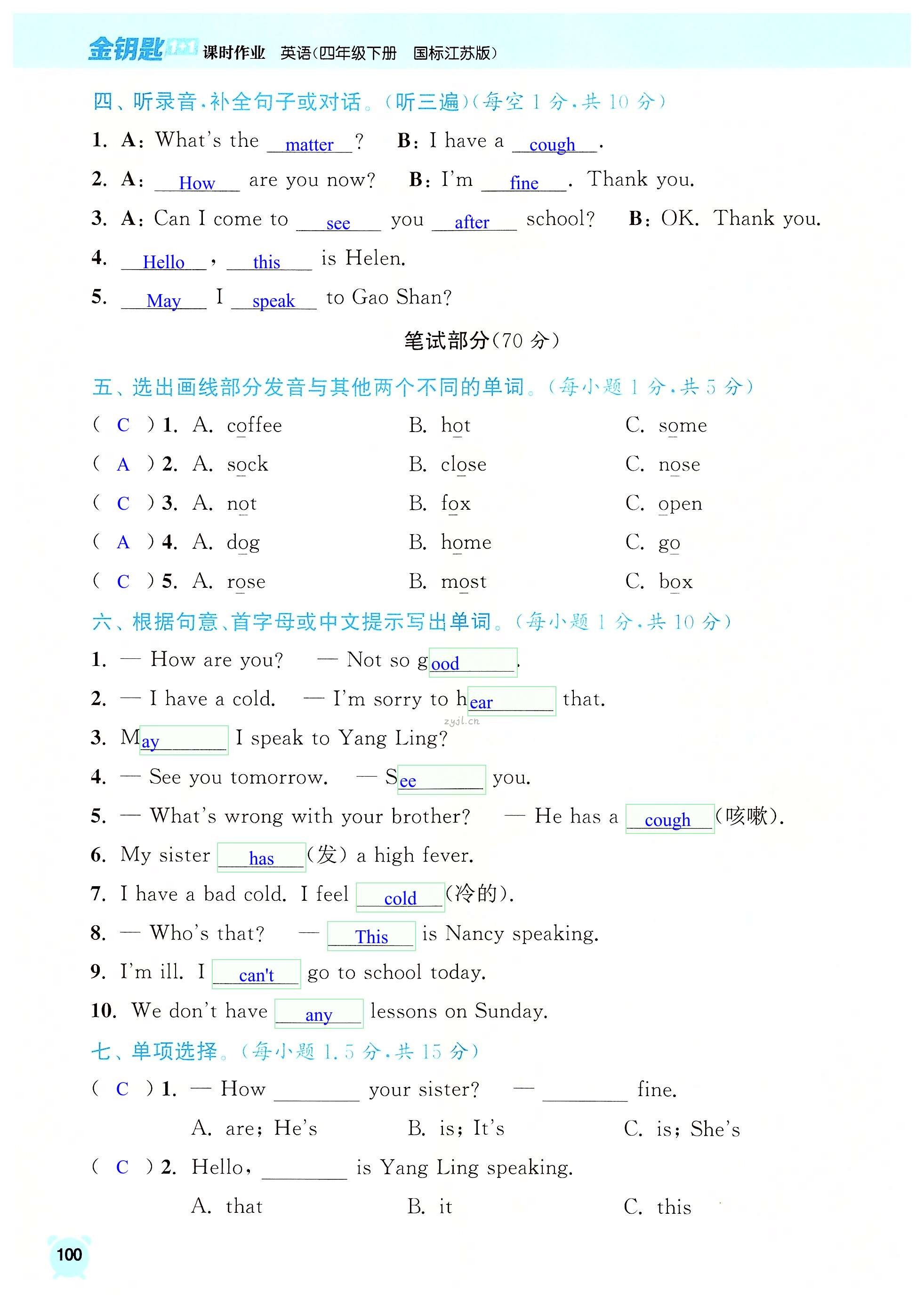 注:目前有些书本章节名称可能整理的还不是很完善,但都是按照顺序排列的,请同学们按照顺序仔细查找。练习册 2022年金钥匙1加1课时作业四年级英语下册江苏版 答案主要是用来给同学们做完题方便对答案用的,请勿直接抄袭。