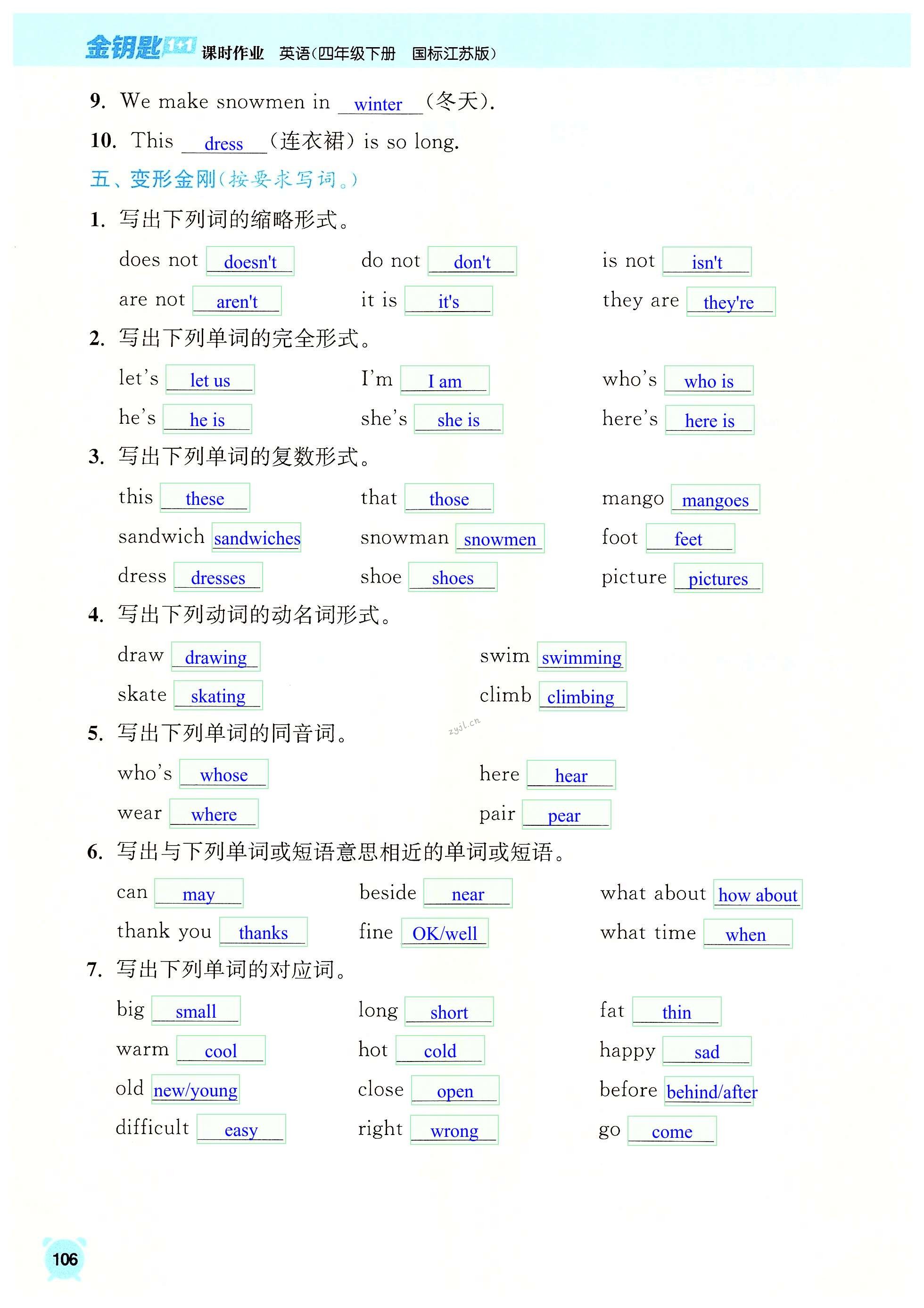 注:目前有些书本章节名称可能整理的还不是很完善,但都是按照顺序排列的,请同学们按照顺序仔细查找。练习册 2022年金钥匙1加1课时作业四年级英语下册江苏版 答案主要是用来给同学们做完题方便对答案用的,请勿直接抄袭。