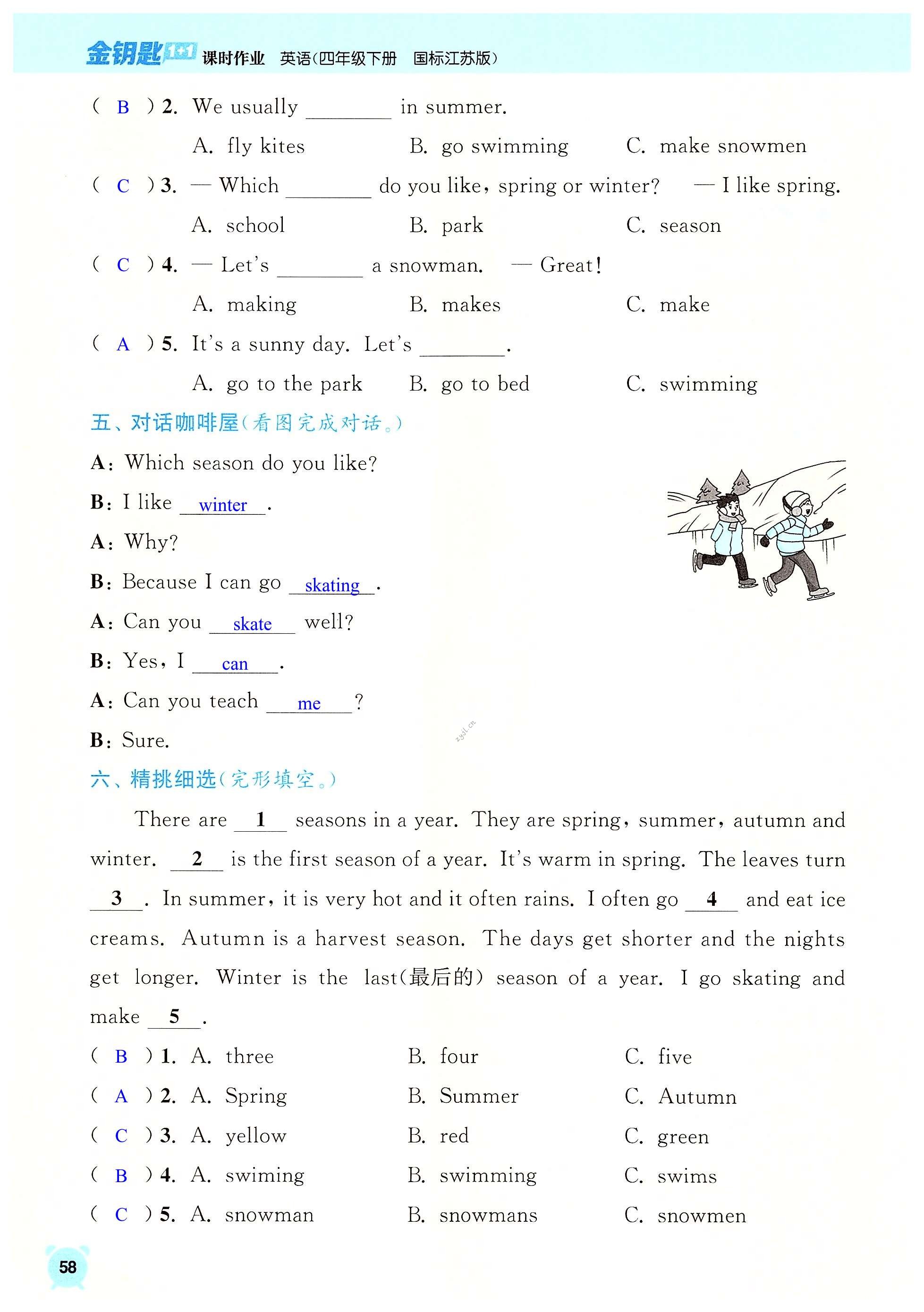 注:目前有些书本章节名称可能整理的还不是很完善,但都是按照顺序排列的,请同学们按照顺序仔细查找。练习册 2022年金钥匙1加1课时作业四年级英语下册江苏版 答案主要是用来给同学们做完题方便对答案用的,请勿直接抄袭。