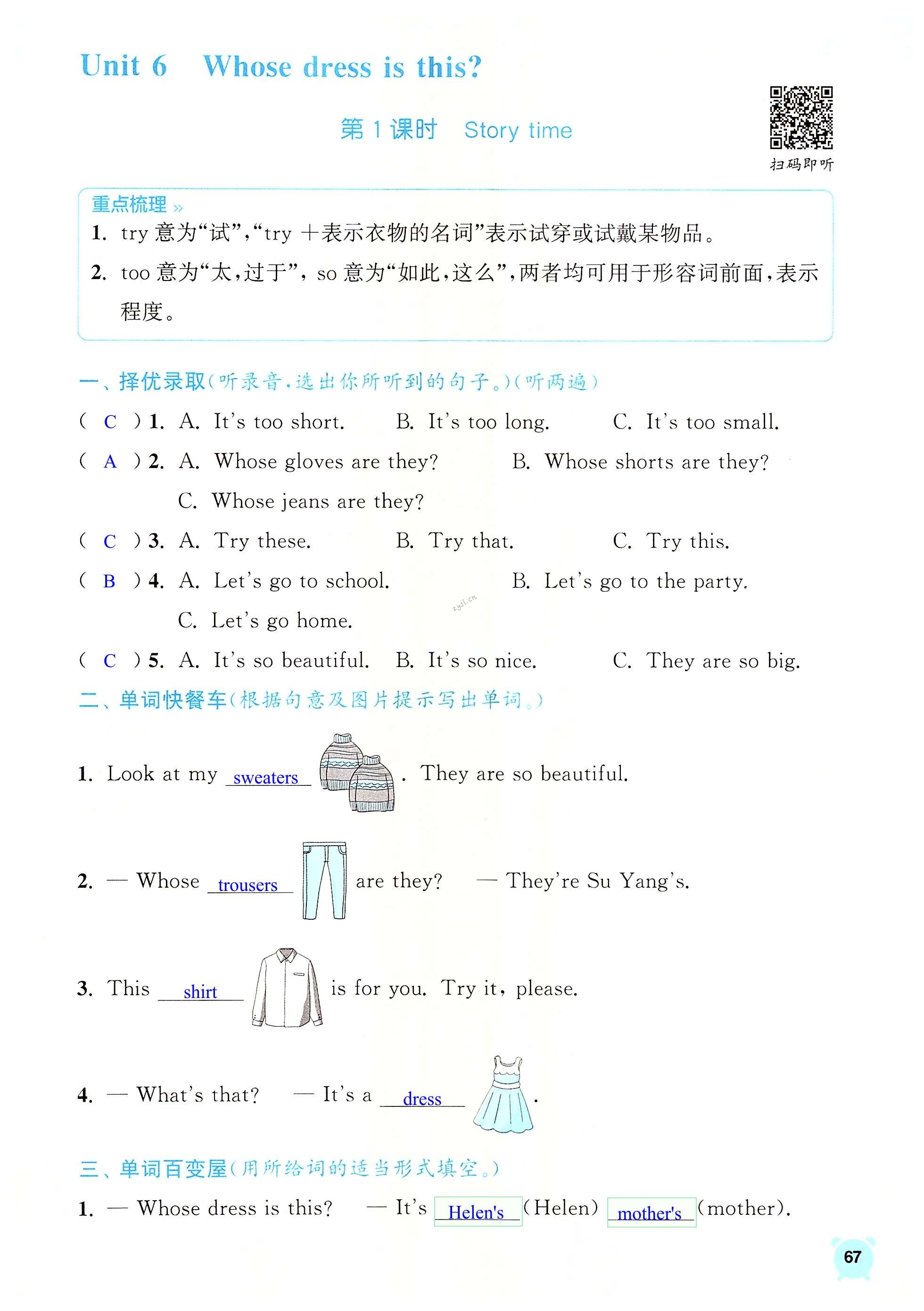 注:目前有些书本章节名称可能整理的还不是很完善,但都是按照顺序排列的,请同学们按照顺序仔细查找。练习册 2022年金钥匙1加1课时作业四年级英语下册江苏版 答案主要是用来给同学们做完题方便对答案用的,请勿直接抄袭。