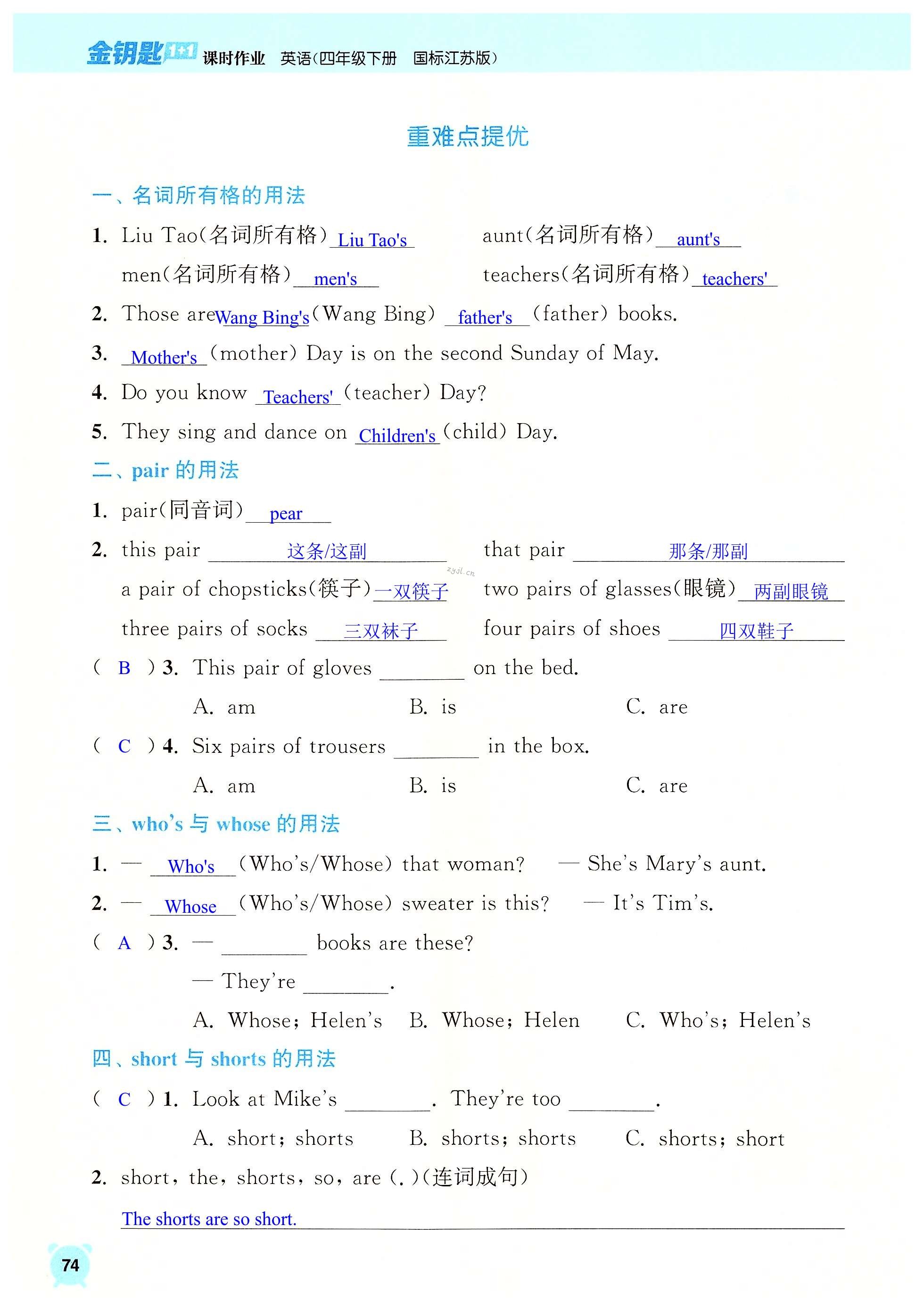 注:目前有些书本章节名称可能整理的还不是很完善,但都是按照顺序排列的,请同学们按照顺序仔细查找。练习册 2022年金钥匙1加1课时作业四年级英语下册江苏版 答案主要是用来给同学们做完题方便对答案用的,请勿直接抄袭。