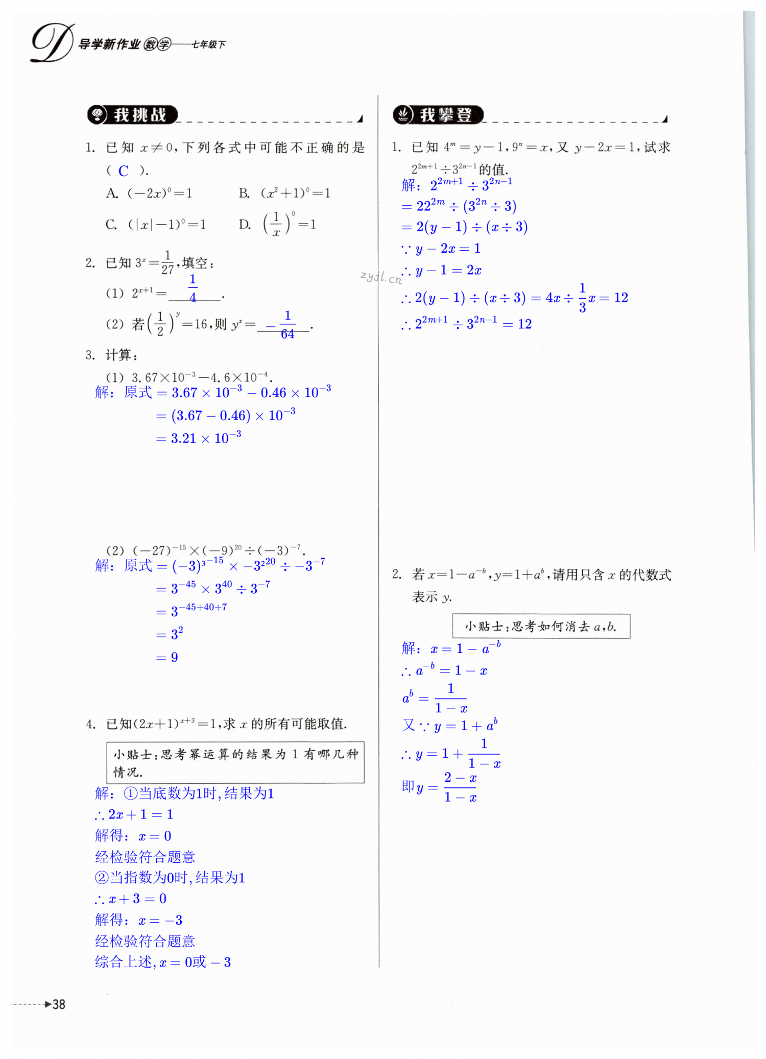 注:目前有些书本章节名称可能整理的还不是很完善,但都是按照顺序排列的,请同学们按照顺序仔细查找。练习册 2022年导学新作业七年级数学下册浙教版 答案主要是用来给同学们做完题方便对答案用的,请勿直接抄袭。