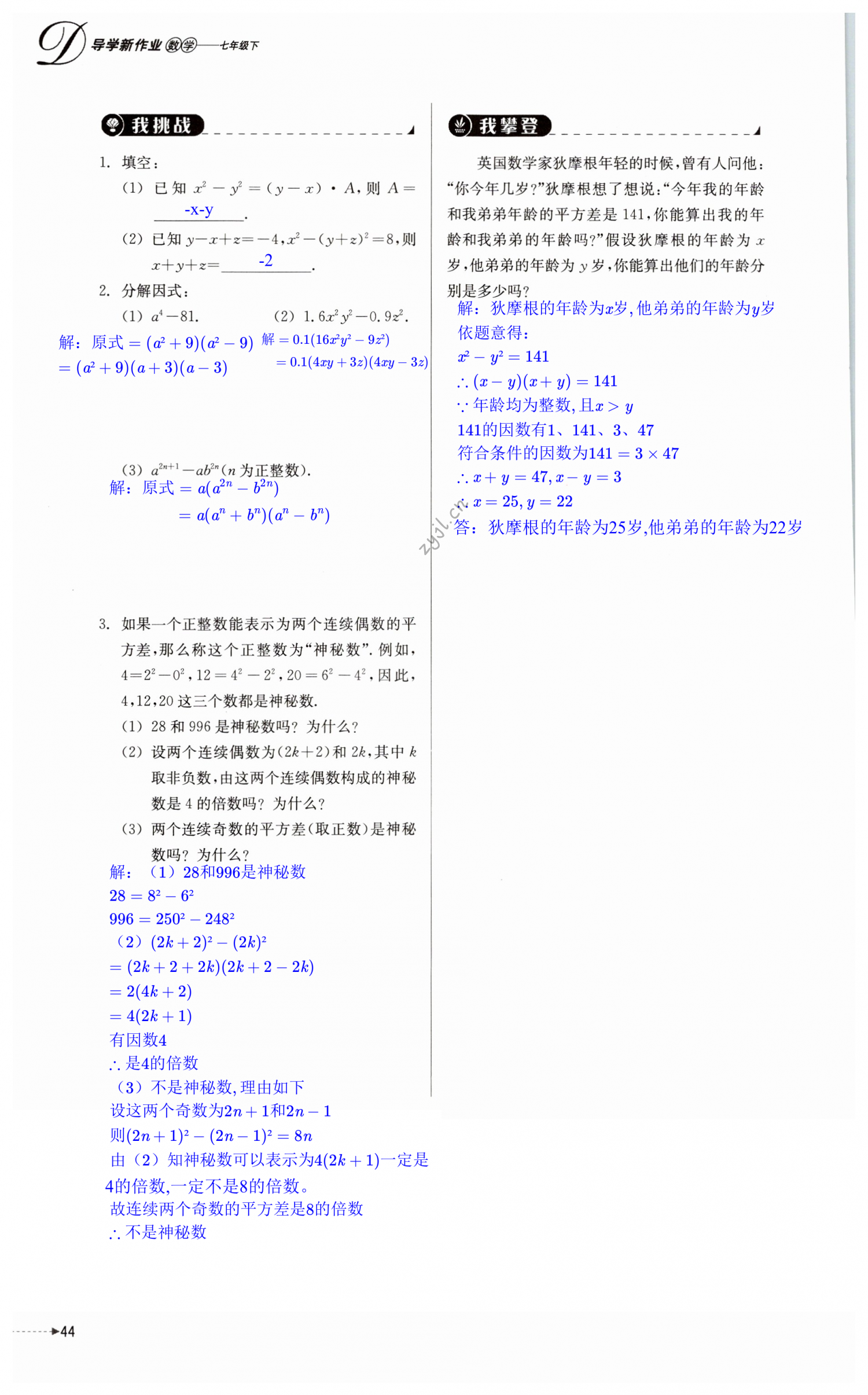 注:目前有些书本章节名称可能整理的还不是很完善,但都是按照顺序排列的,请同学们按照顺序仔细查找。练习册 2022年导学新作业七年级数学下册浙教版 答案主要是用来给同学们做完题方便对答案用的,请勿直接抄袭。