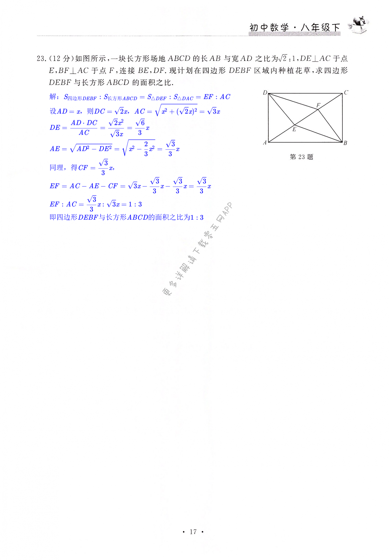 注:目前有些书本章节名称可能整理的还不是很完善,但都是按照顺序排列的,请同学们按照顺序仔细查找。练习册 2022年课时精练初中数学八年级下册浙教版 答案主要是用来给同学们做完题方便对答案用的,请勿直接抄袭。