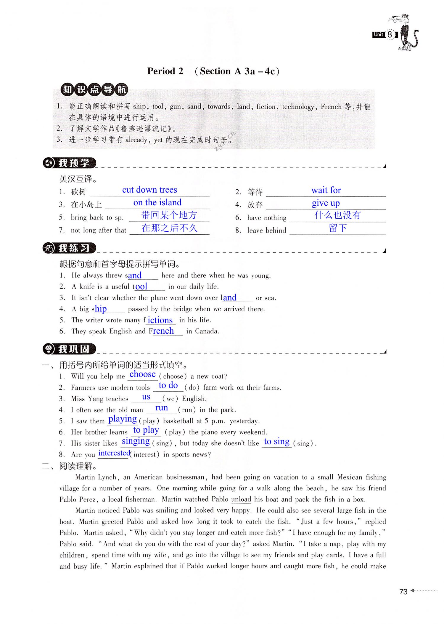 注:目前有些书本章节名称可能整理的还不是很完善,但都是按照顺序排列的,请同学们按照顺序仔细查找。练习册 2022年导学新作业八年级英语下册人教版 答案主要是用来给同学们做完题方便对答案用的,请勿直接抄袭。