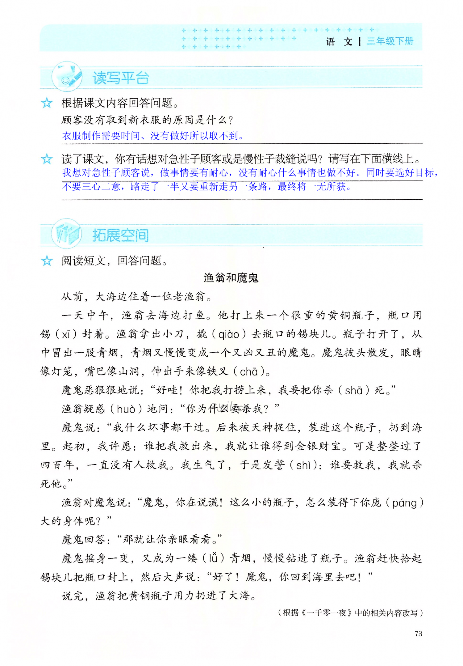 注:目前有些书本章节名称可能整理的还不是很完善,但都是按照顺序排列的,请同学们按照顺序仔细查找。练习册 2022年人教金学典同步解析与测评三年级语文下册人教版山西专版 答案主要是用来给同学们做完题方便对答案用的,请勿直接抄袭。