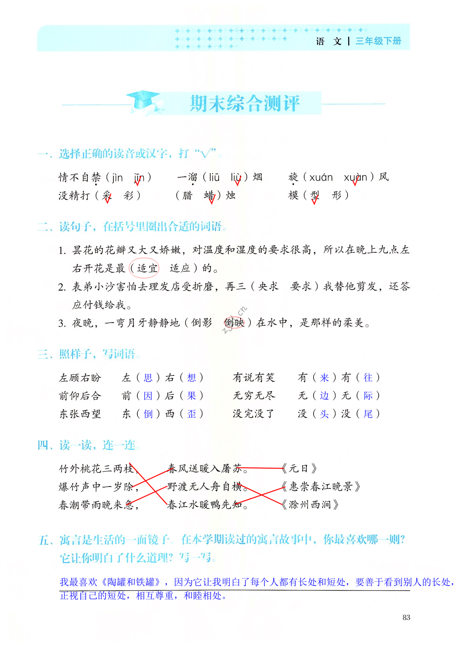 注:目前有些书本章节名称可能整理的还不是很完善,但都是按照顺序排列的,请同学们按照顺序仔细查找。练习册 2022年人教金学典同步解析与测评三年级语文下册人教版山西专版 答案主要是用来给同学们做完题方便对答案用的,请勿直接抄袭。