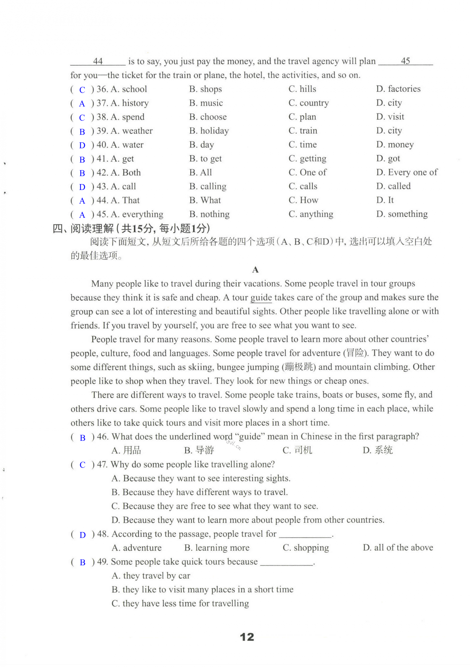 注:目前有些书本章节名称可能整理的还不是很完善,但都是按照顺序排列的,请同学们按照顺序仔细查找。练习册 2022年课课练初中英语活页卷八年级下册译林版 答案主要是用来给同学们做完题方便对答案用的,请勿直接抄袭。