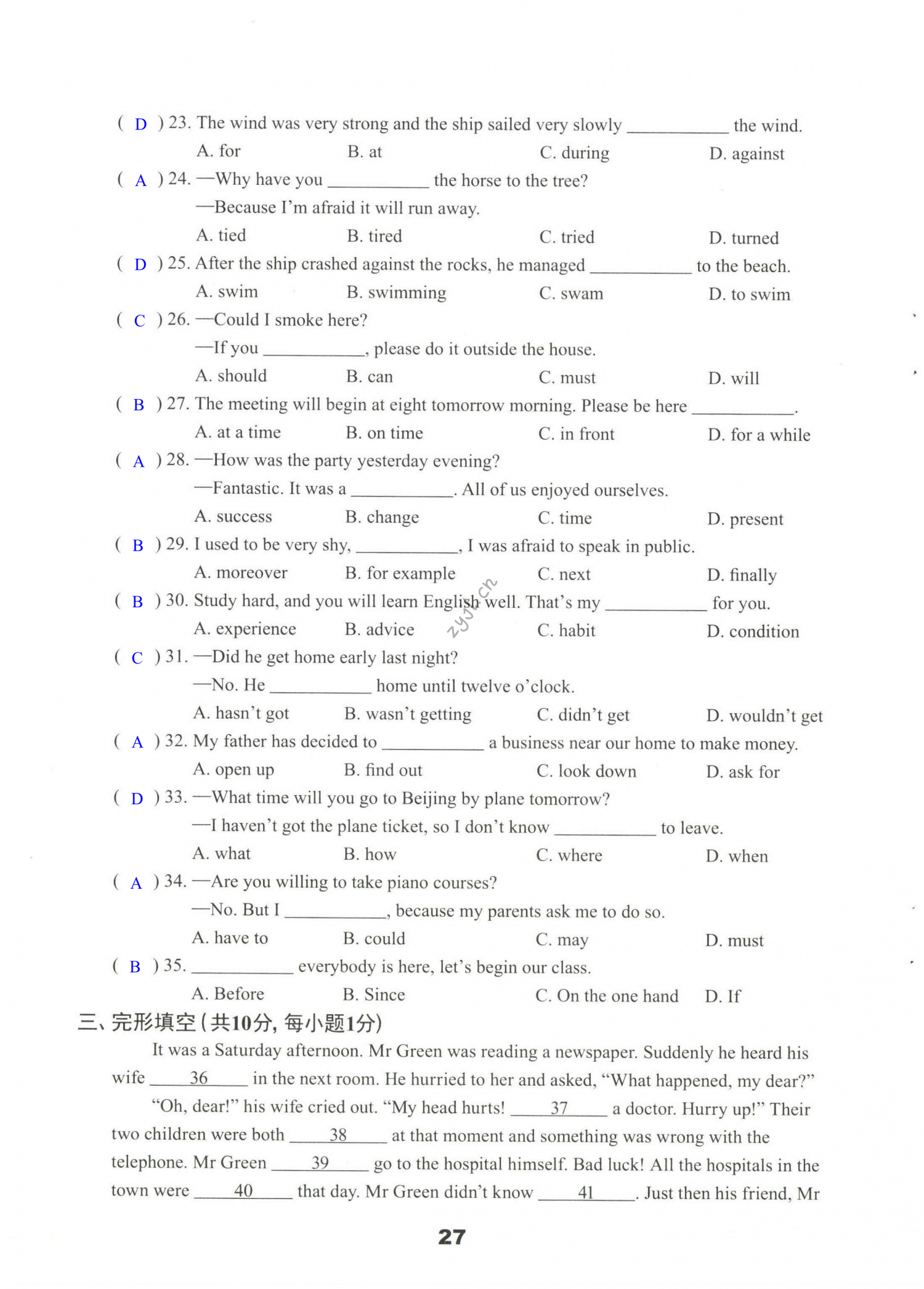 注:目前有些书本章节名称可能整理的还不是很完善,但都是按照顺序排列的,请同学们按照顺序仔细查找。练习册 2022年课课练初中英语活页卷八年级下册译林版 答案主要是用来给同学们做完题方便对答案用的,请勿直接抄袭。