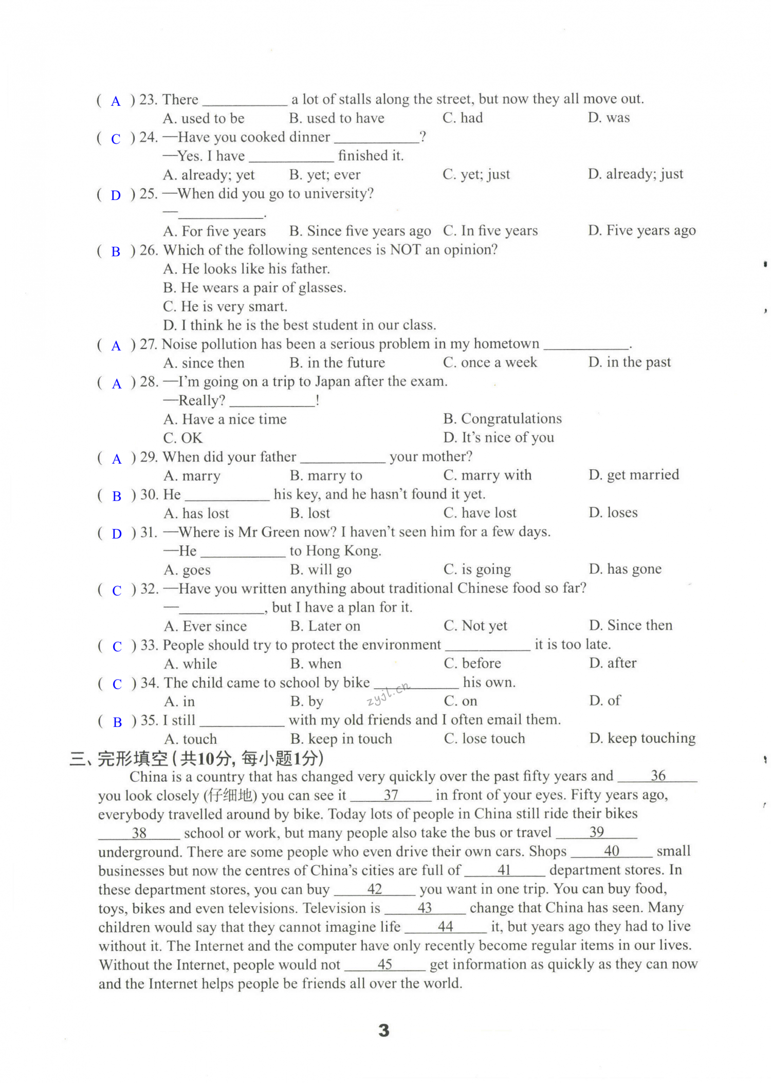注:目前有些书本章节名称可能整理的还不是很完善,但都是按照顺序排列的,请同学们按照顺序仔细查找。练习册 2022年课课练初中英语活页卷八年级下册译林版 答案主要是用来给同学们做完题方便对答案用的,请勿直接抄袭。