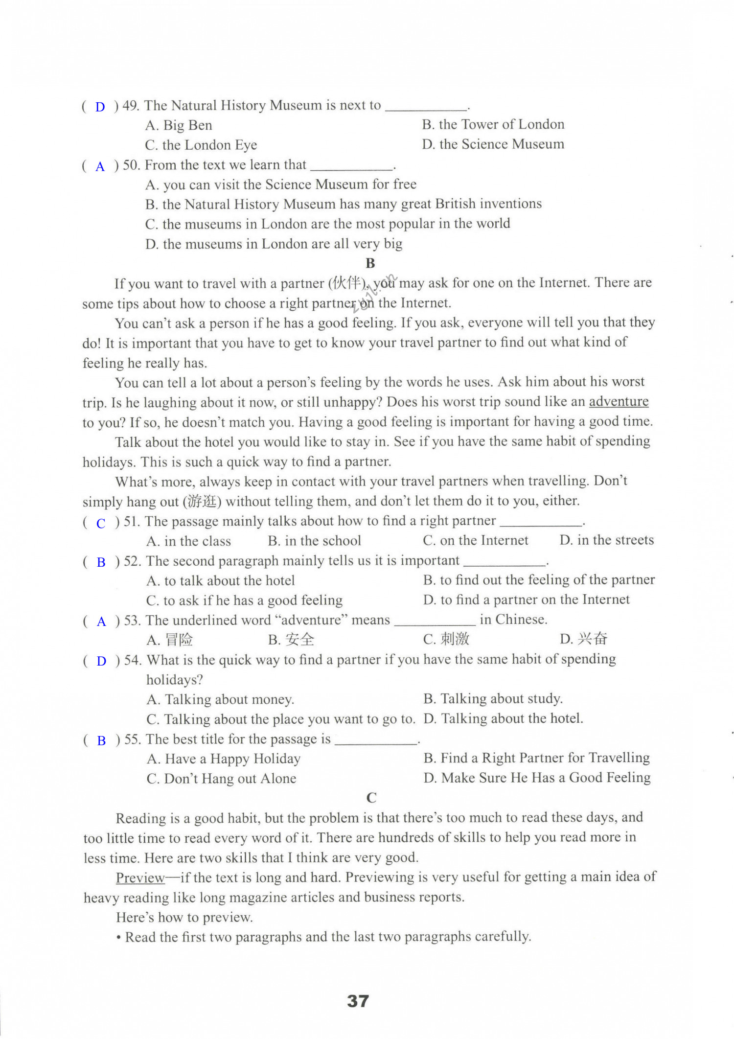 注:目前有些书本章节名称可能整理的还不是很完善,但都是按照顺序排列的,请同学们按照顺序仔细查找。练习册 2022年课课练初中英语活页卷八年级下册译林版 答案主要是用来给同学们做完题方便对答案用的,请勿直接抄袭。