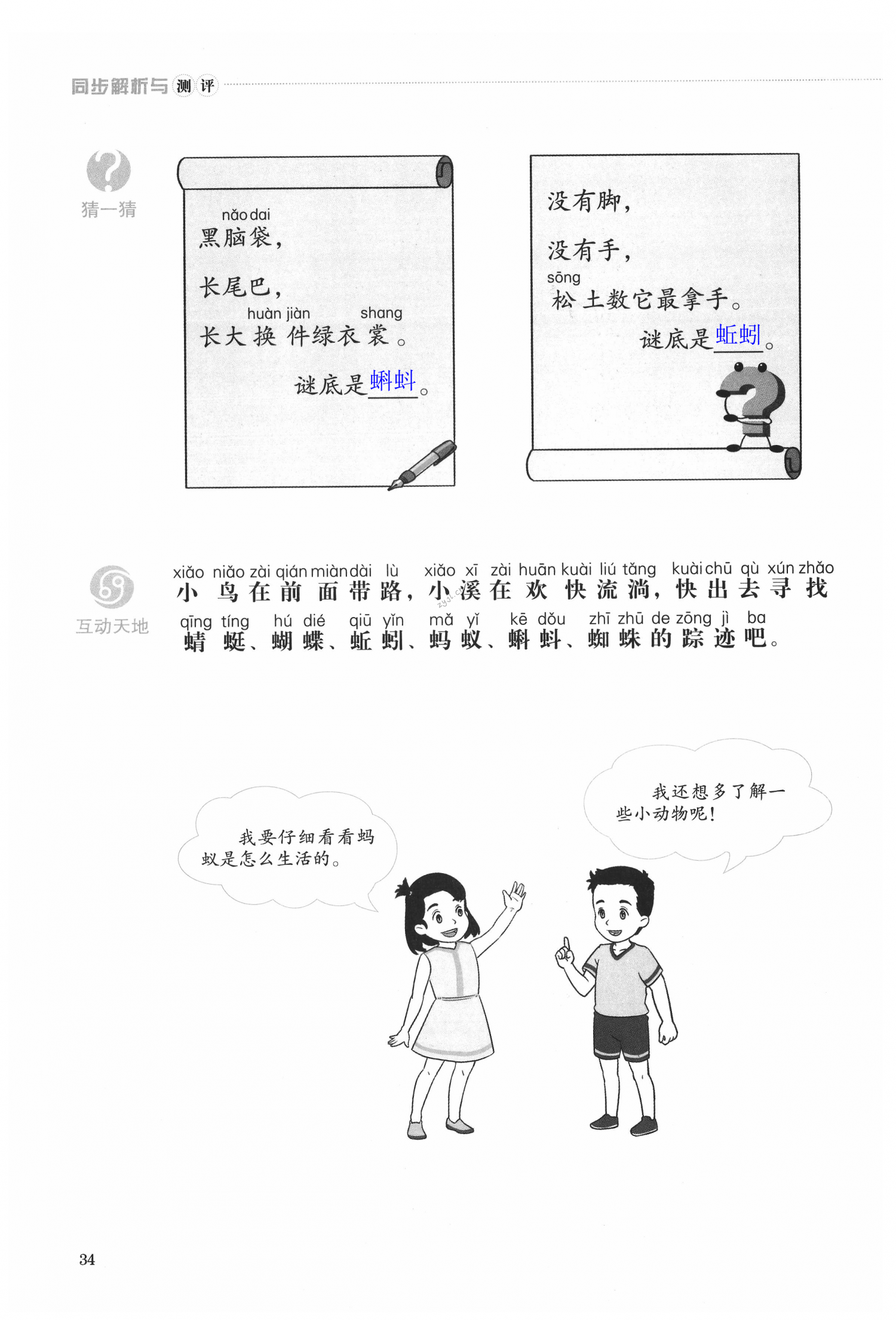 注:目前有些书本章节名称可能整理的还不是很完善,但都是按照顺序排列的,请同学们按照顺序仔细查找。练习册 2022年人教金学典同步解析与测评一年级语文下册人教版山西专版 答案主要是用来给同学们做完题方便对答案用的,请勿直接抄袭。