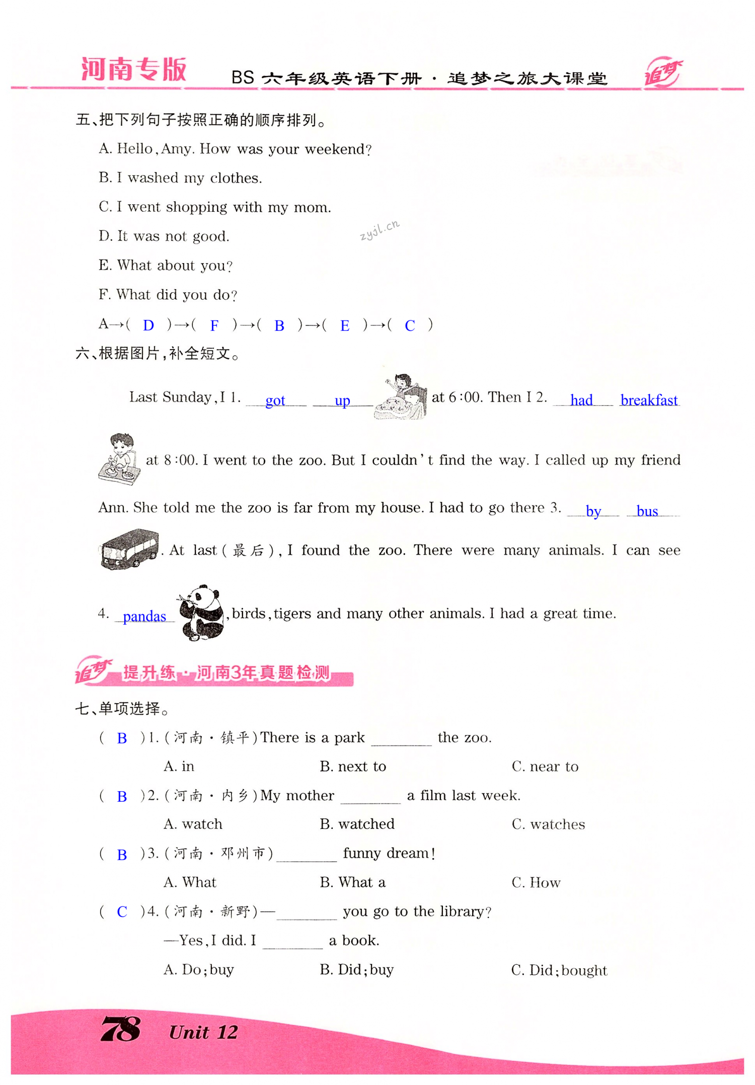 注:目前有些书本章节名称可能整理的还不是很完善,但都是按照顺序排列的,请同学们按照顺序仔细查找。练习册 2022年追梦之旅大课堂六年级英语下册北师大版河南专版 答案主要是用来给同学们做完题方便对答案用的,请勿直接抄袭。