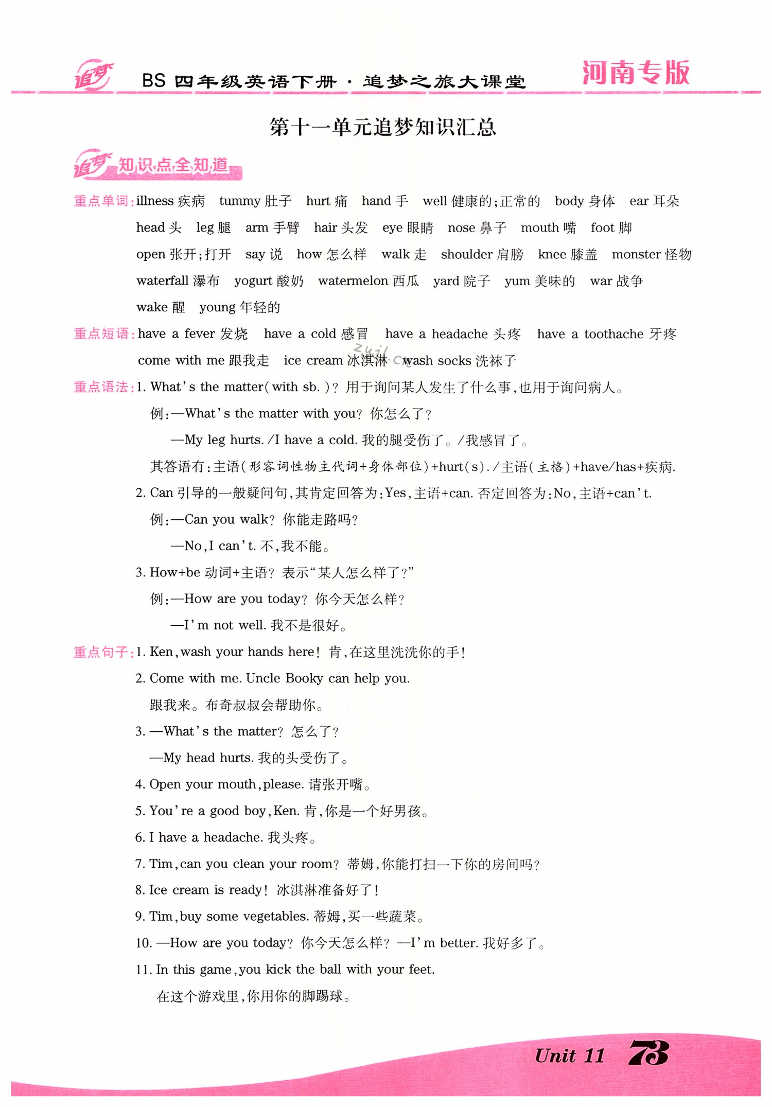 2022年追梦之旅大课堂四年级英语下册北师大版河南专版