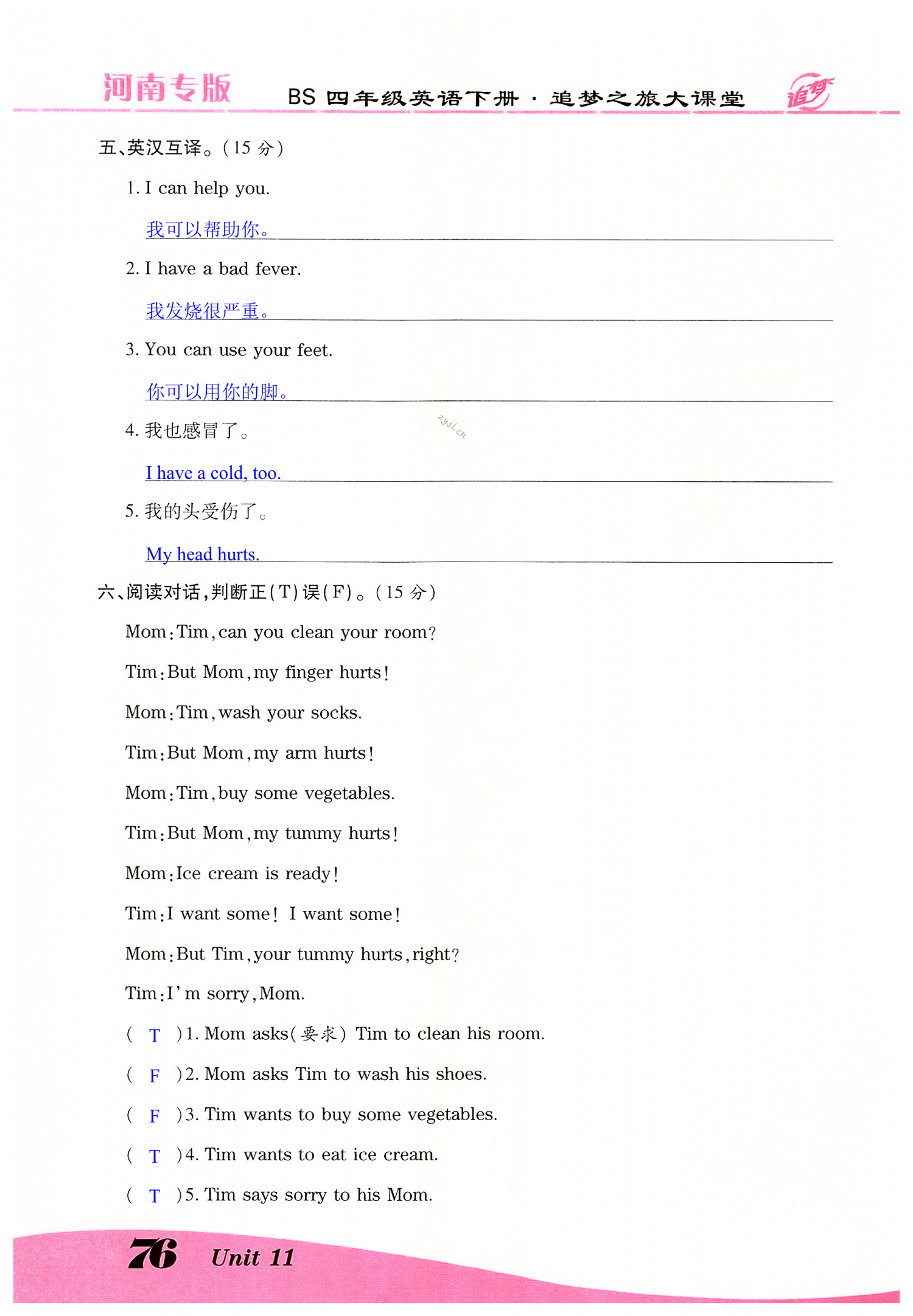 注:目前有些书本章节名称可能整理的还不是很完善,但都是按照顺序排列的,请同学们按照顺序仔细查找。练习册 2022年追梦之旅大课堂四年级英语下册北师大版河南专版 答案主要是用来给同学们做完题方便对答案用的,请勿直接抄袭。