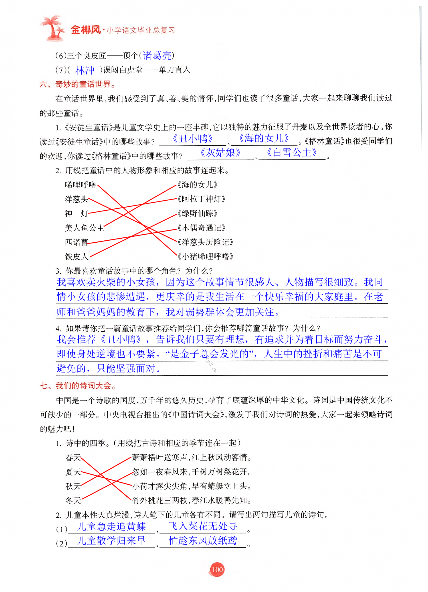 注:目前有些书本章节名称可能整理的还不是很完善,但都是按照顺序排列的,请同学们按照顺序仔细查找。练习册 2022年金椰风小学毕业总复习六年级语文人教版 答案主要是用来给同学们做完题方便对答案用的,请勿直接抄袭。