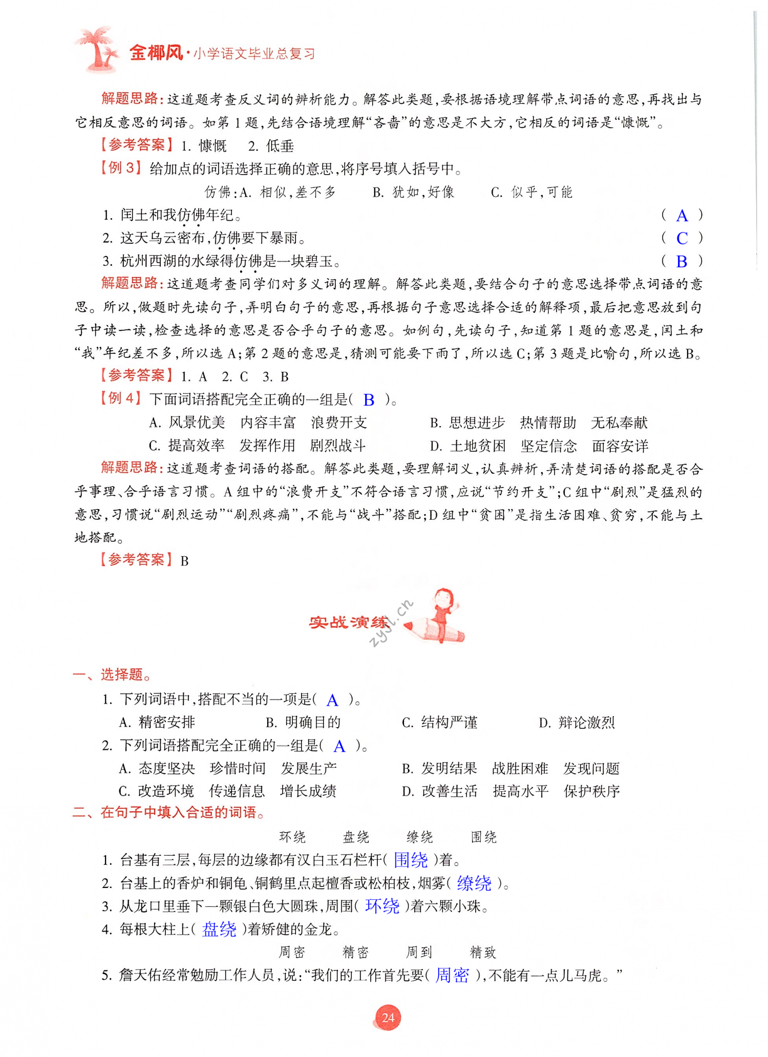 注:目前有些书本章节名称可能整理的还不是很完善,但都是按照顺序排列的,请同学们按照顺序仔细查找。练习册 2022年金椰风小学毕业总复习六年级语文人教版 答案主要是用来给同学们做完题方便对答案用的,请勿直接抄袭。