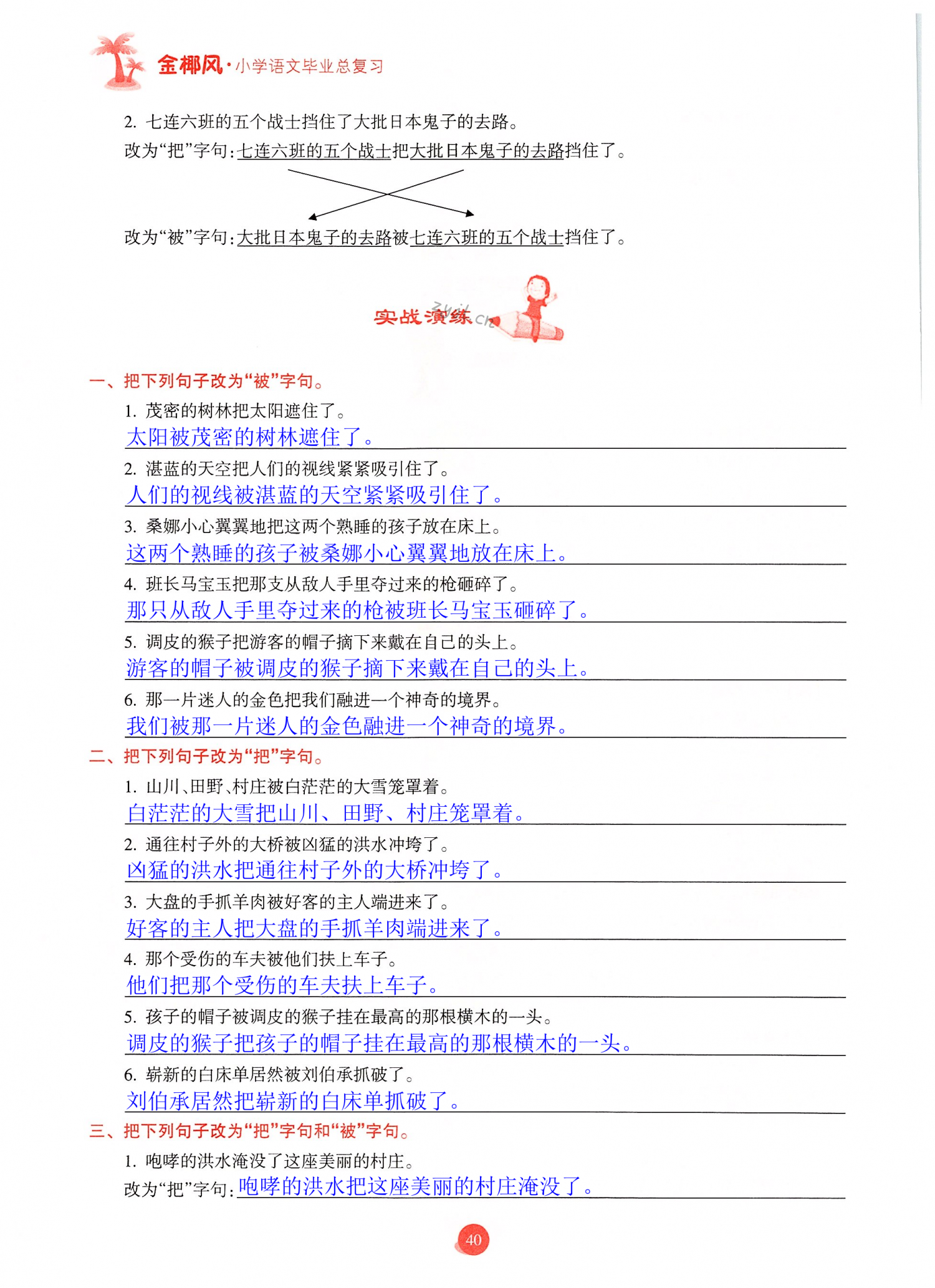 注:目前有些书本章节名称可能整理的还不是很完善,但都是按照顺序排列的,请同学们按照顺序仔细查找。练习册 2022年金椰风小学毕业总复习六年级语文人教版 答案主要是用来给同学们做完题方便对答案用的,请勿直接抄袭。