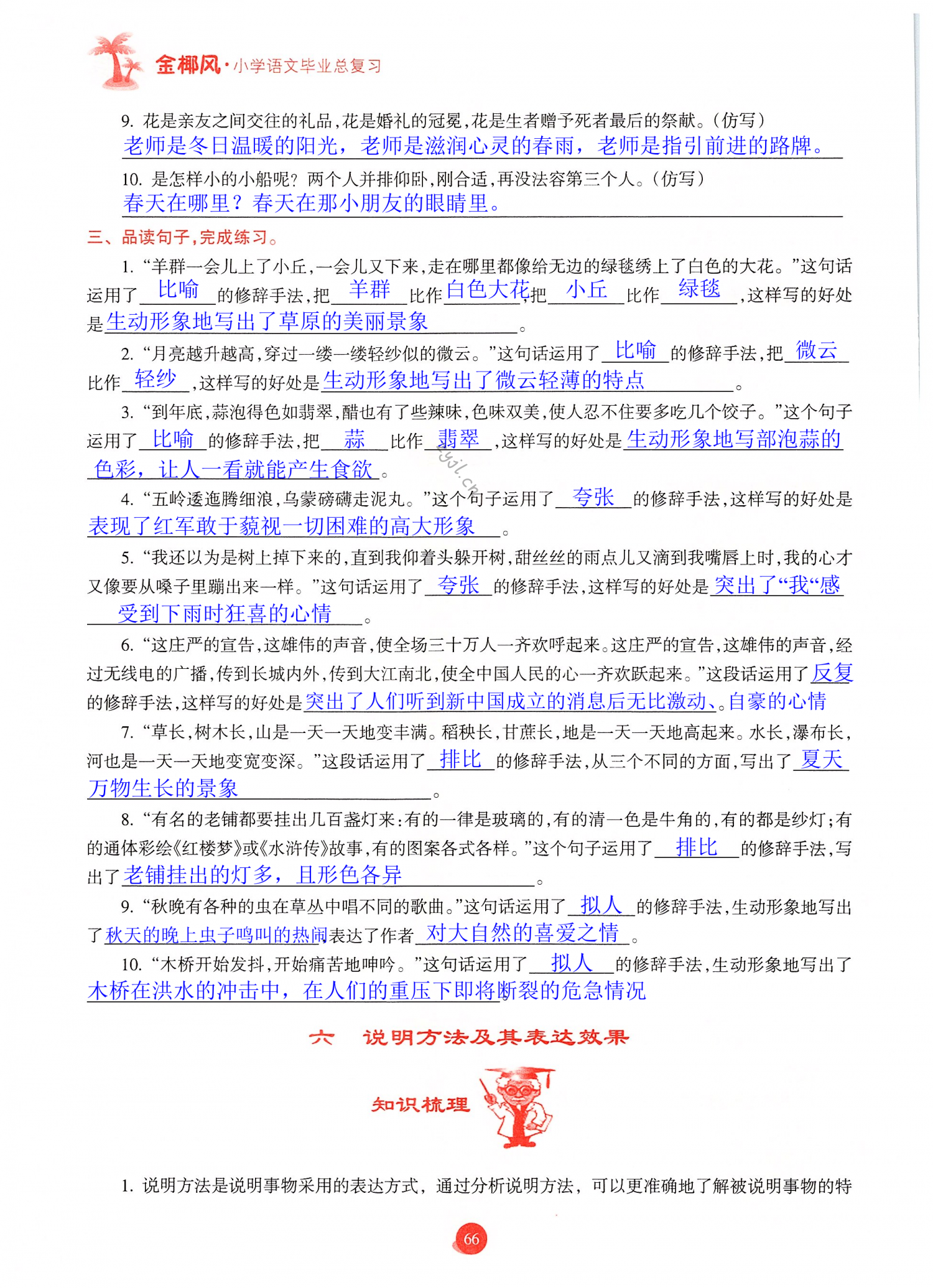 注:目前有些书本章节名称可能整理的还不是很完善,但都是按照顺序排列的,请同学们按照顺序仔细查找。练习册 2022年金椰风小学毕业总复习六年级语文人教版 答案主要是用来给同学们做完题方便对答案用的,请勿直接抄袭。