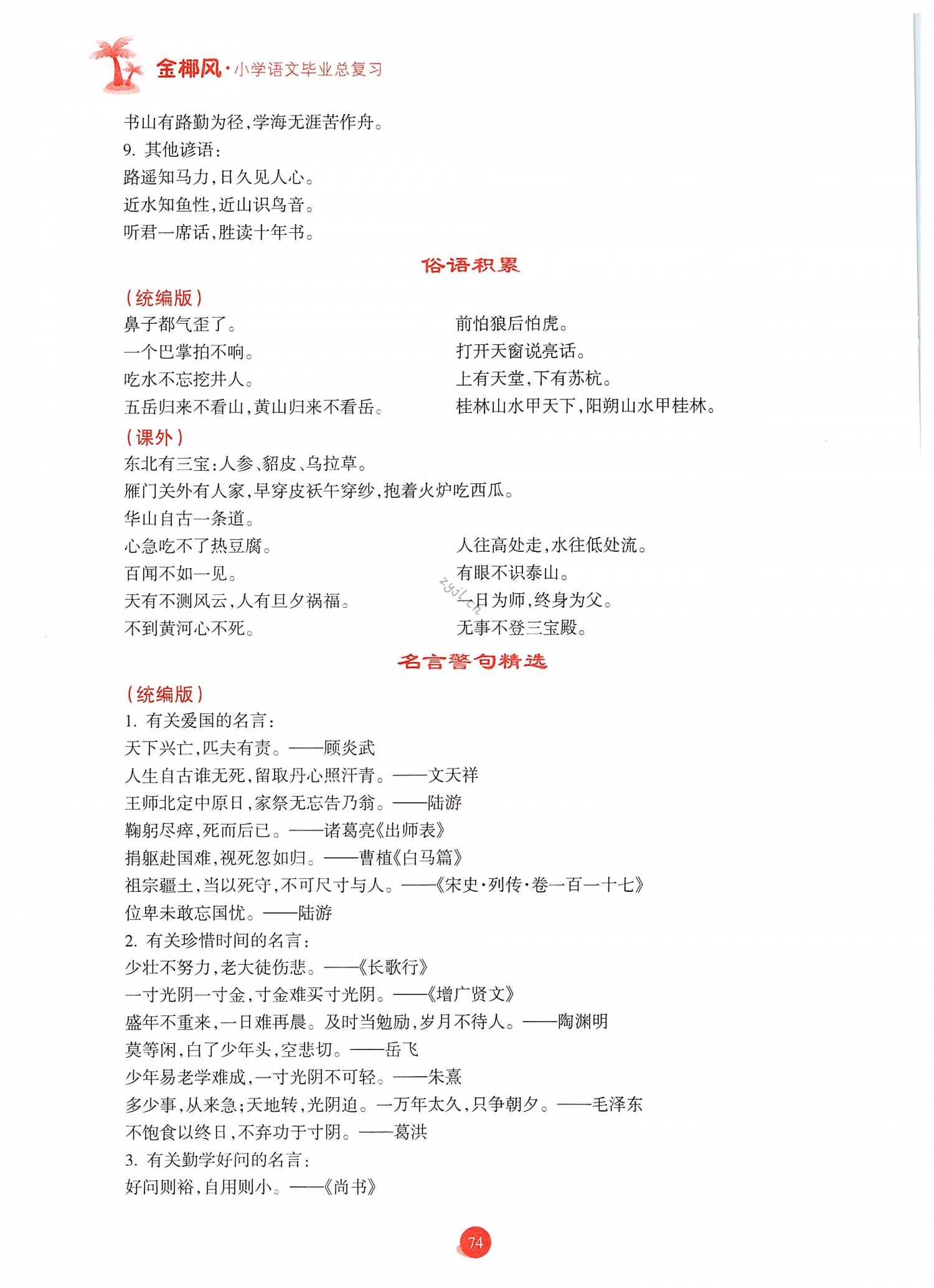 注:目前有些书本章节名称可能整理的还不是很完善,但都是按照顺序排列的,请同学们按照顺序仔细查找。练习册 2022年金椰风小学毕业总复习六年级语文人教版 答案主要是用来给同学们做完题方便对答案用的,请勿直接抄袭。