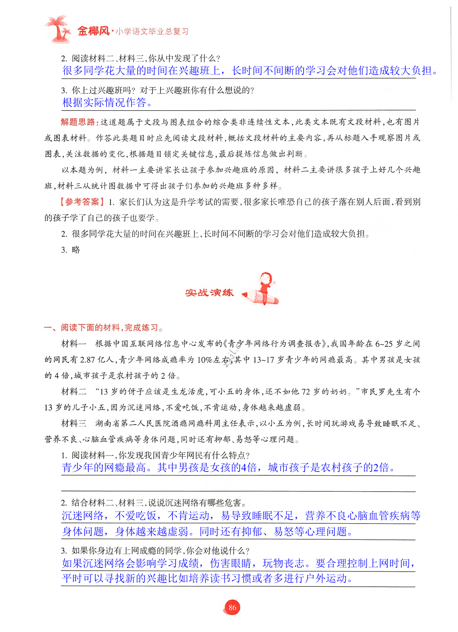 注:目前有些书本章节名称可能整理的还不是很完善,但都是按照顺序排列的,请同学们按照顺序仔细查找。练习册 2022年金椰风小学毕业总复习六年级语文人教版 答案主要是用来给同学们做完题方便对答案用的,请勿直接抄袭。