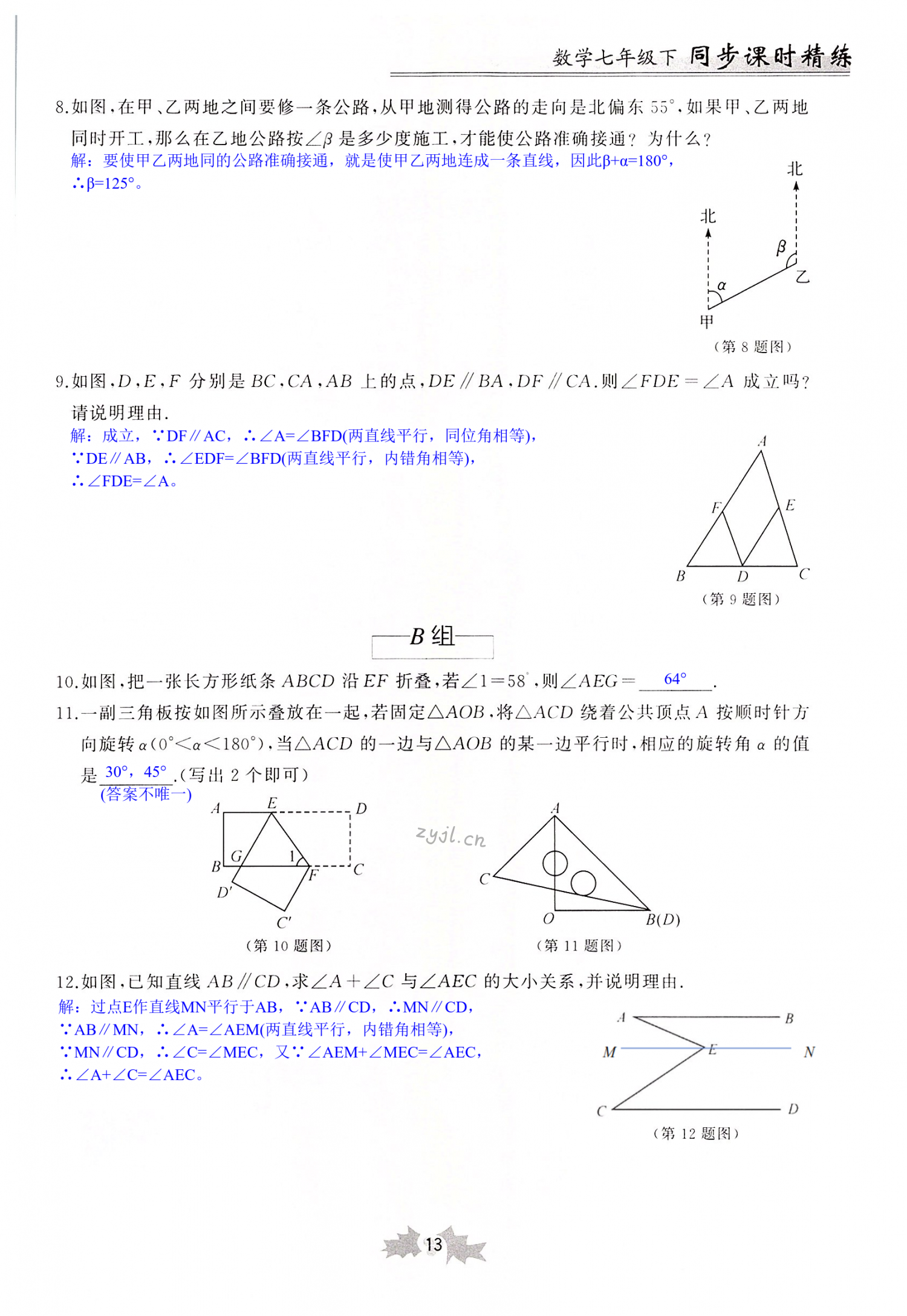 注:目前有些书本章节名称可能整理的还不是很完善,但都是按照顺序排列的,请同学们按照顺序仔细查找。练习册 2022年同步课时精练七年级数学下册浙教版 答案主要是用来给同学们做完题方便对答案用的,请勿直接抄袭。