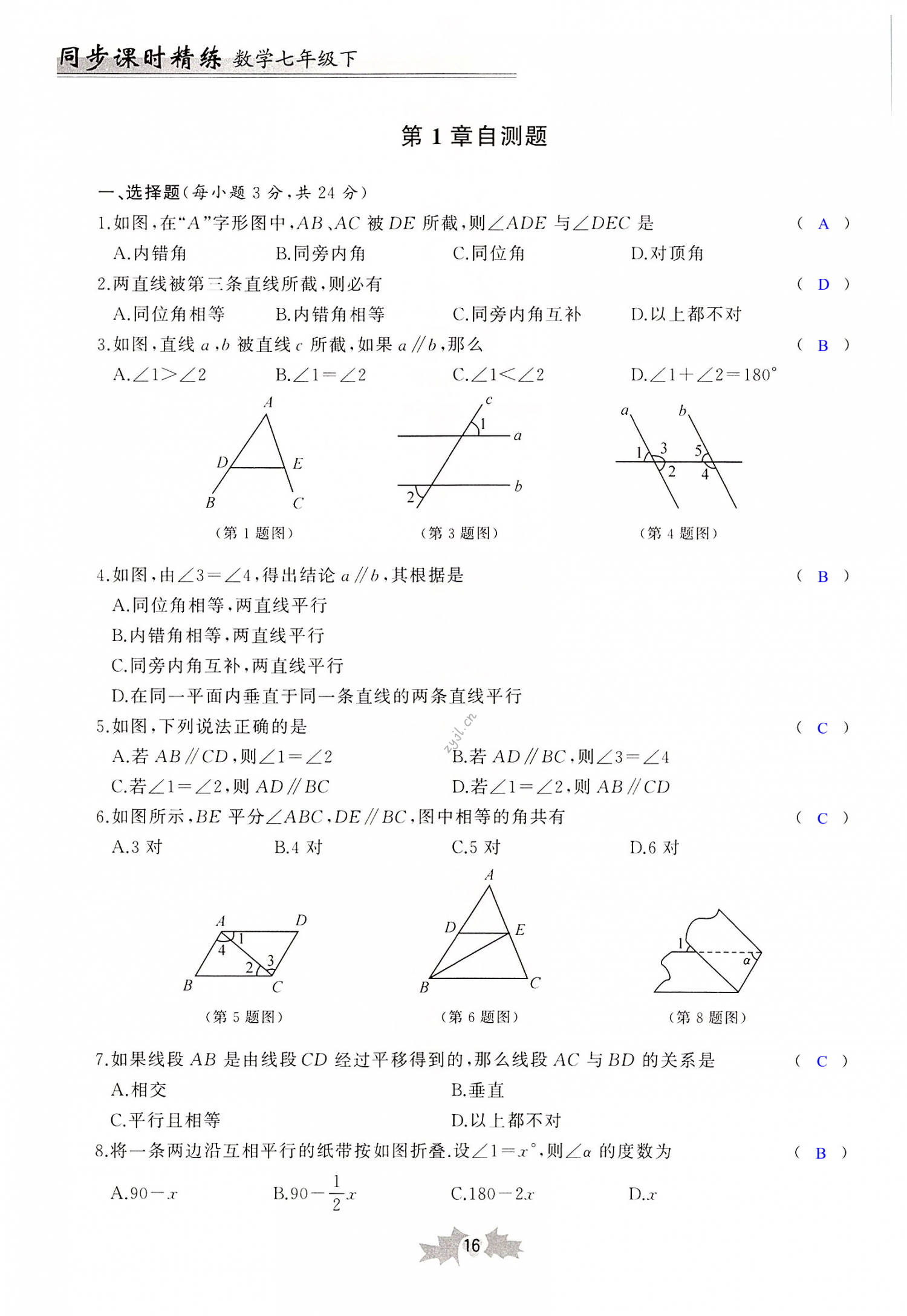 注:目前有些书本章节名称可能整理的还不是很完善,但都是按照顺序排列的,请同学们按照顺序仔细查找。练习册 2022年同步课时精练七年级数学下册浙教版 答案主要是用来给同学们做完题方便对答案用的,请勿直接抄袭。