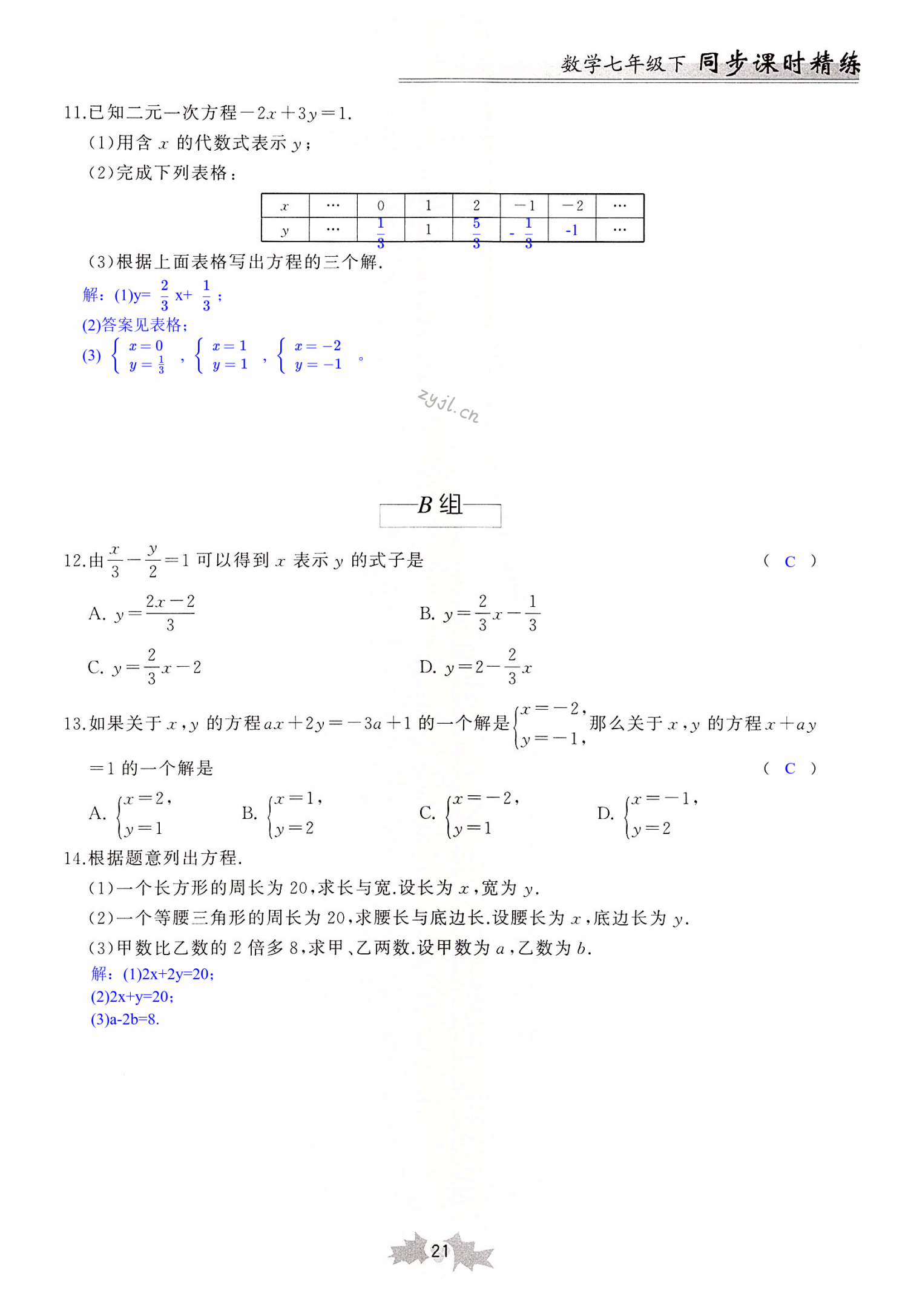 注:目前有些书本章节名称可能整理的还不是很完善,但都是按照顺序排列的,请同学们按照顺序仔细查找。练习册 2022年同步课时精练七年级数学下册浙教版 答案主要是用来给同学们做完题方便对答案用的,请勿直接抄袭。