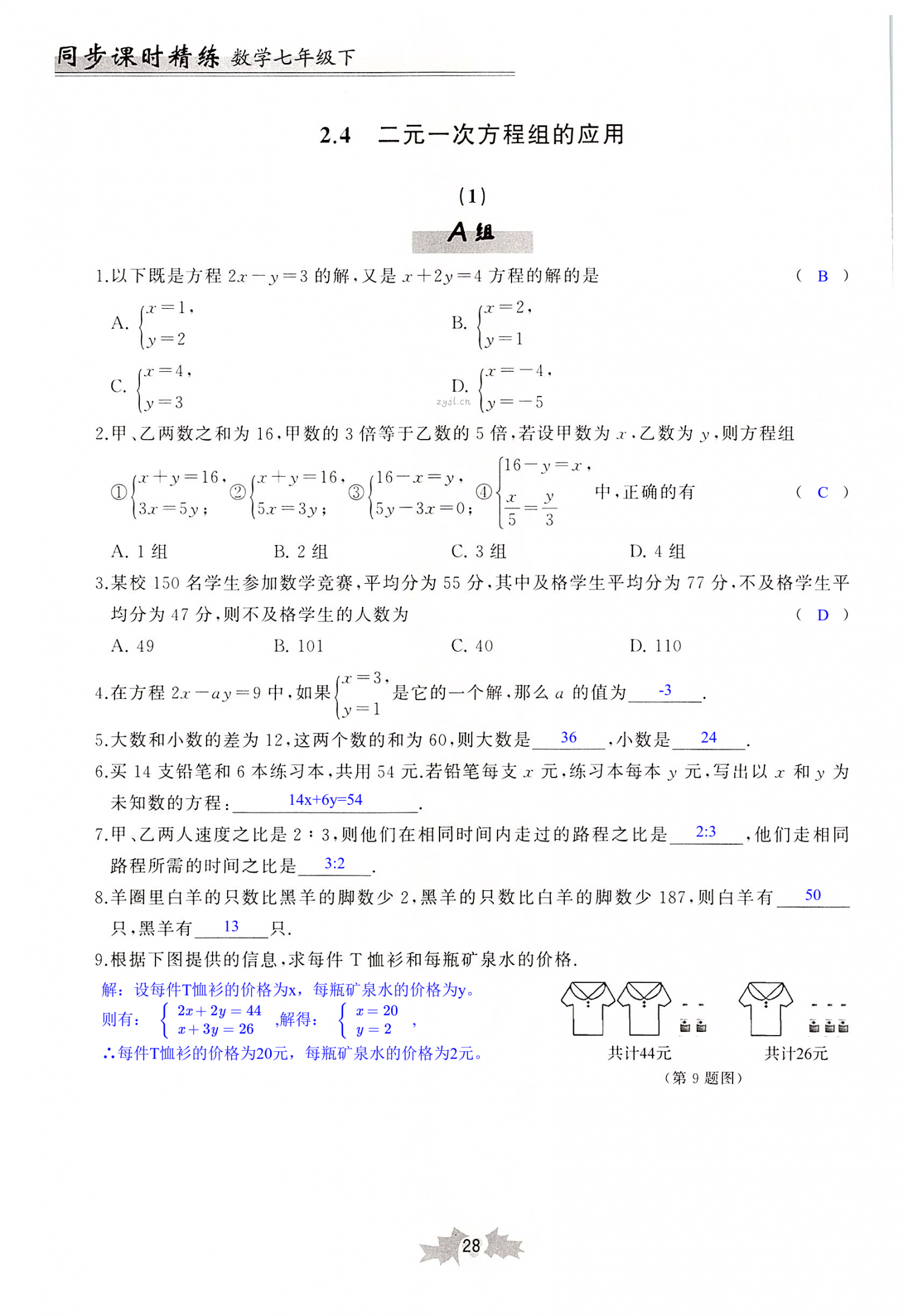 注:目前有些书本章节名称可能整理的还不是很完善,但都是按照顺序排列的,请同学们按照顺序仔细查找。练习册 2022年同步课时精练七年级数学下册浙教版 答案主要是用来给同学们做完题方便对答案用的,请勿直接抄袭。