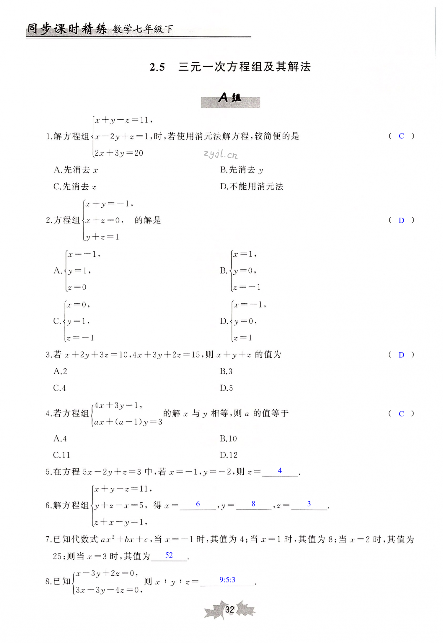 注:目前有些书本章节名称可能整理的还不是很完善,但都是按照顺序排列的,请同学们按照顺序仔细查找。练习册 2022年同步课时精练七年级数学下册浙教版 答案主要是用来给同学们做完题方便对答案用的,请勿直接抄袭。
