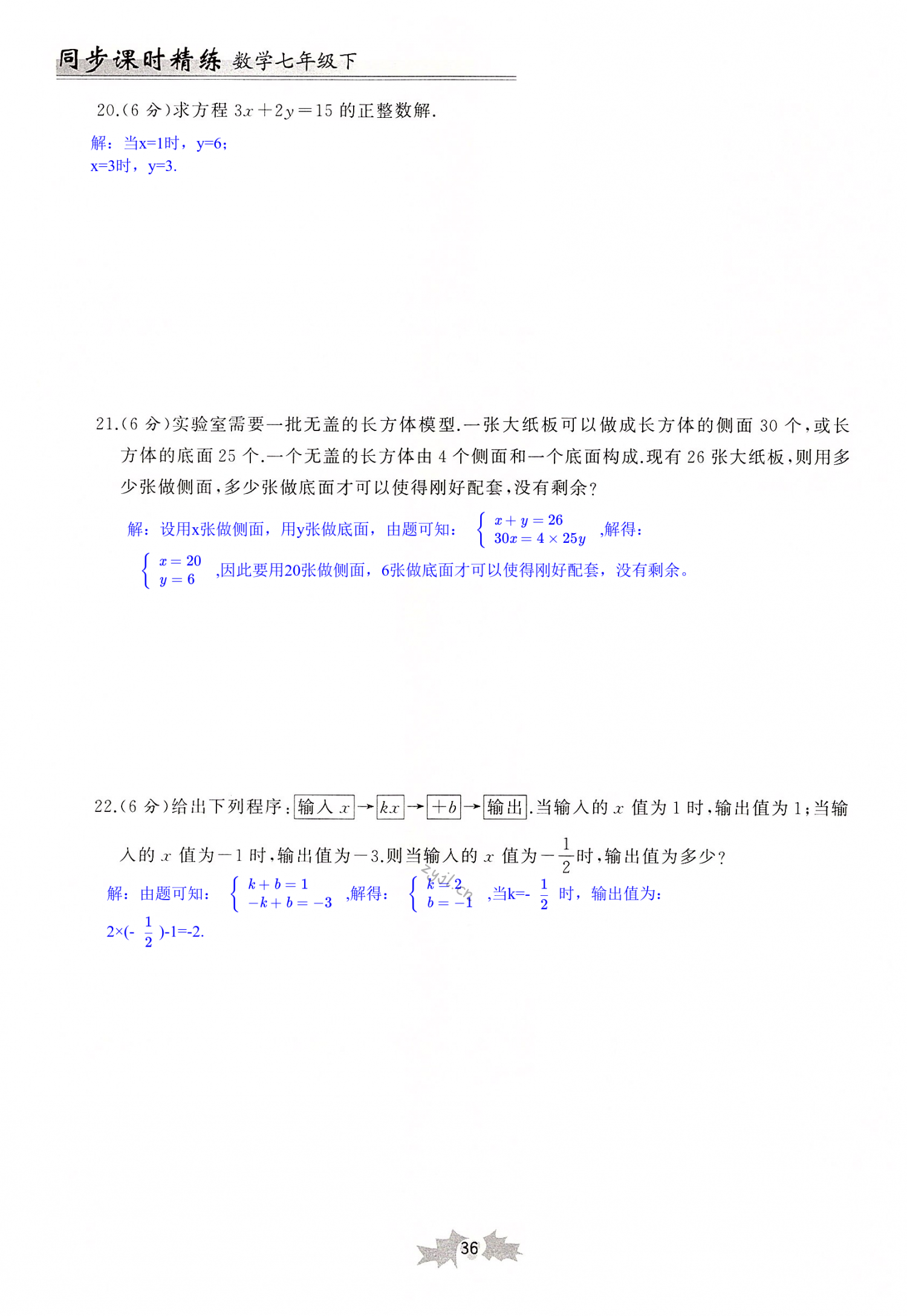 注:目前有些书本章节名称可能整理的还不是很完善,但都是按照顺序排列的,请同学们按照顺序仔细查找。练习册 2022年同步课时精练七年级数学下册浙教版 答案主要是用来给同学们做完题方便对答案用的,请勿直接抄袭。