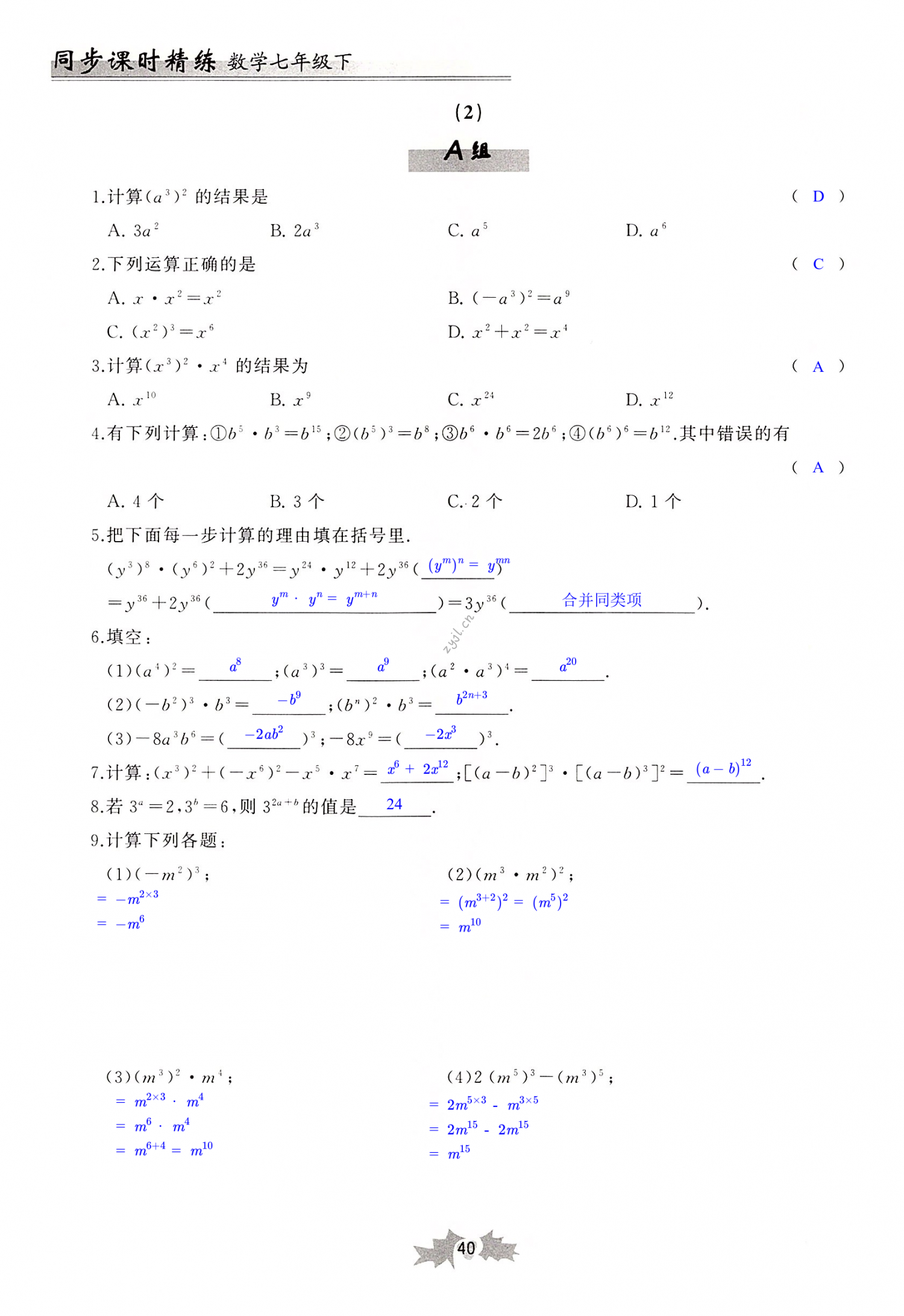 注:目前有些书本章节名称可能整理的还不是很完善,但都是按照顺序排列的,请同学们按照顺序仔细查找。练习册 2022年同步课时精练七年级数学下册浙教版 答案主要是用来给同学们做完题方便对答案用的,请勿直接抄袭。