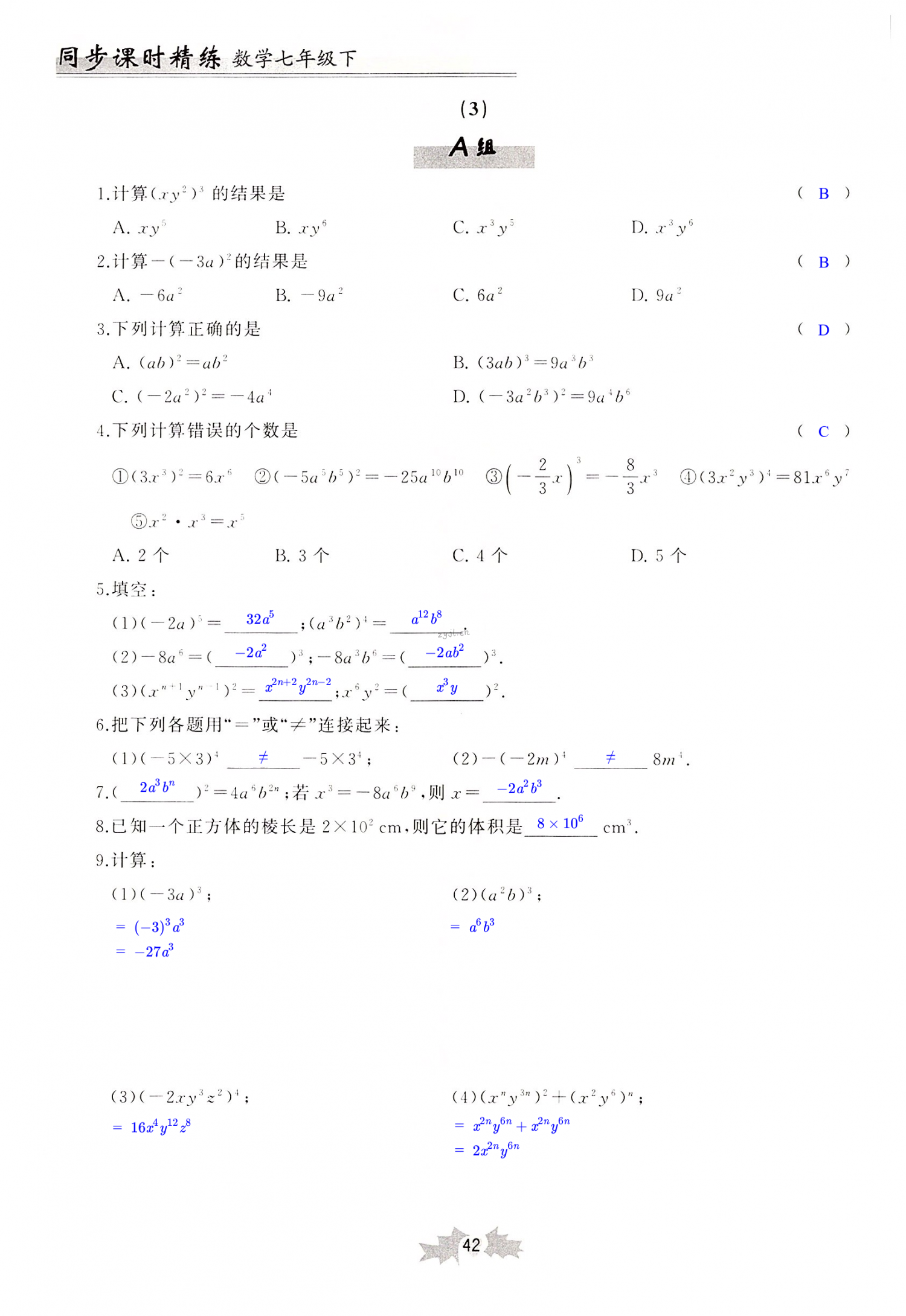 注:目前有些书本章节名称可能整理的还不是很完善,但都是按照顺序排列的,请同学们按照顺序仔细查找。练习册 2022年同步课时精练七年级数学下册浙教版 答案主要是用来给同学们做完题方便对答案用的,请勿直接抄袭。