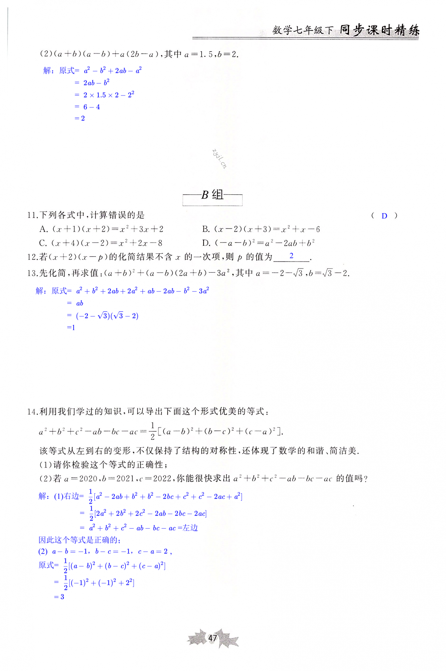 注:目前有些书本章节名称可能整理的还不是很完善,但都是按照顺序排列的,请同学们按照顺序仔细查找。练习册 2022年同步课时精练七年级数学下册浙教版 答案主要是用来给同学们做完题方便对答案用的,请勿直接抄袭。