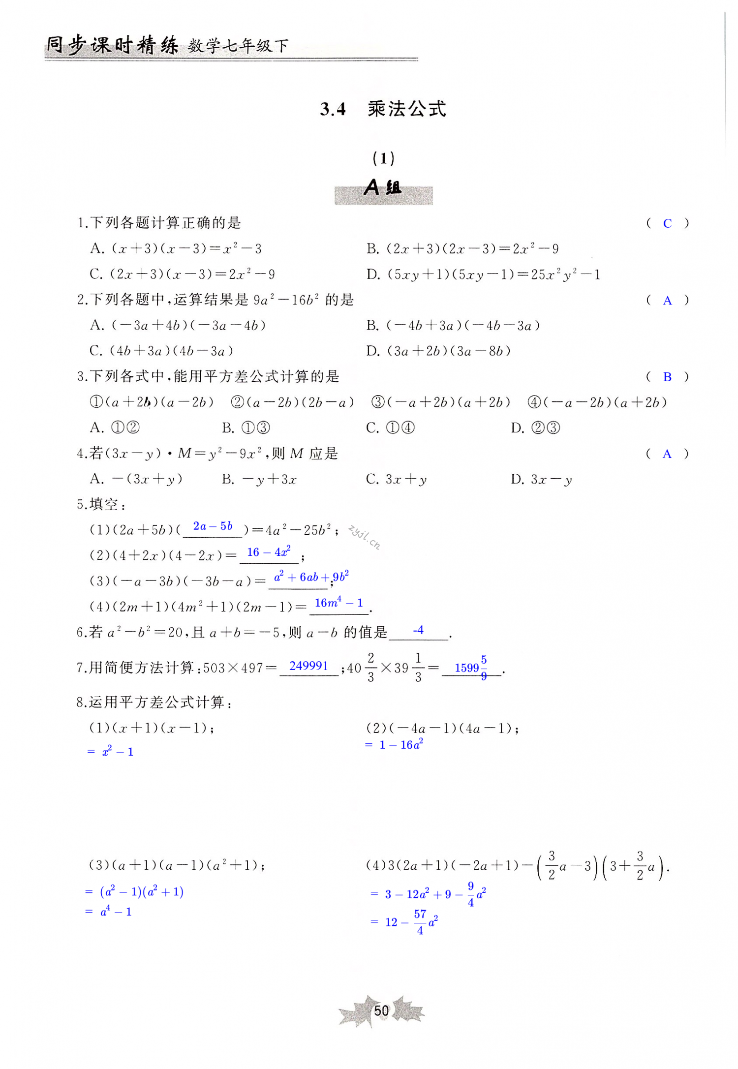 注:目前有些书本章节名称可能整理的还不是很完善,但都是按照顺序排列的,请同学们按照顺序仔细查找。练习册 2022年同步课时精练七年级数学下册浙教版 答案主要是用来给同学们做完题方便对答案用的,请勿直接抄袭。