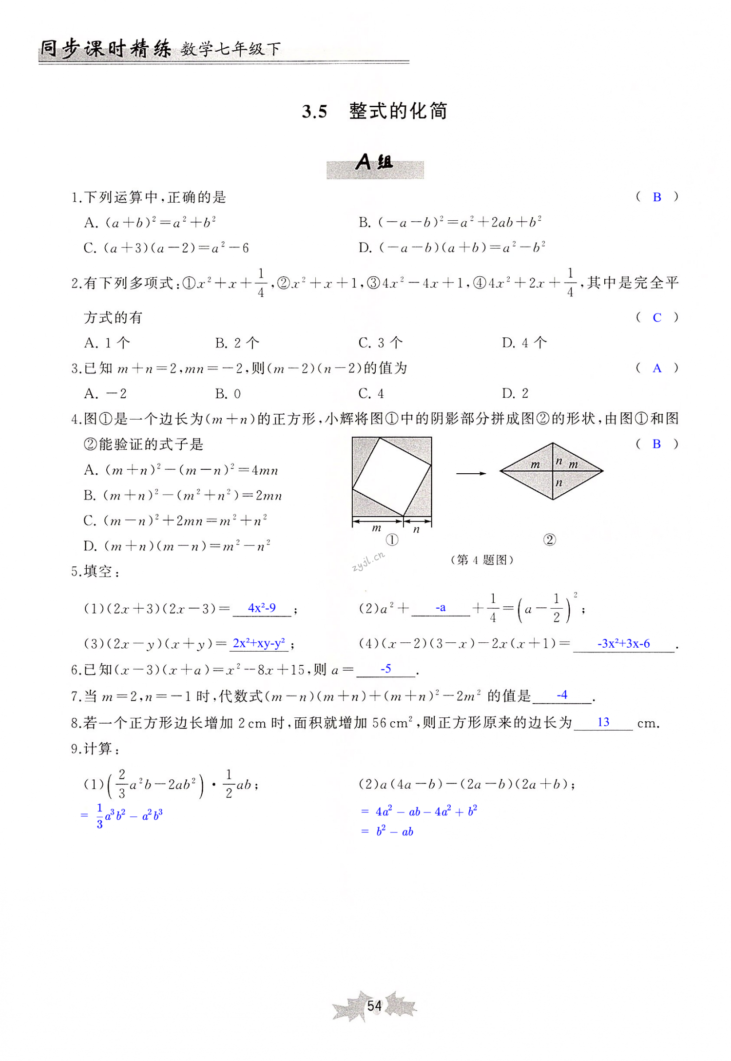 注:目前有些书本章节名称可能整理的还不是很完善,但都是按照顺序排列的,请同学们按照顺序仔细查找。练习册 2022年同步课时精练七年级数学下册浙教版 答案主要是用来给同学们做完题方便对答案用的,请勿直接抄袭。