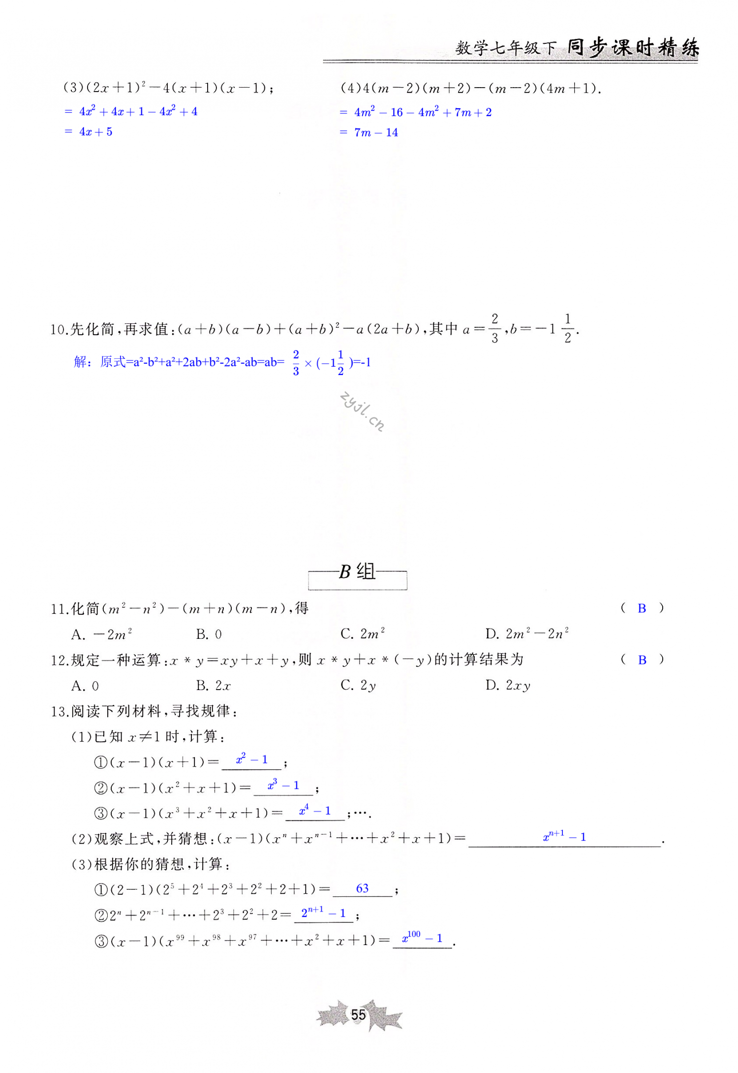 注:目前有些书本章节名称可能整理的还不是很完善,但都是按照顺序排列的,请同学们按照顺序仔细查找。练习册 2022年同步课时精练七年级数学下册浙教版 答案主要是用来给同学们做完题方便对答案用的,请勿直接抄袭。