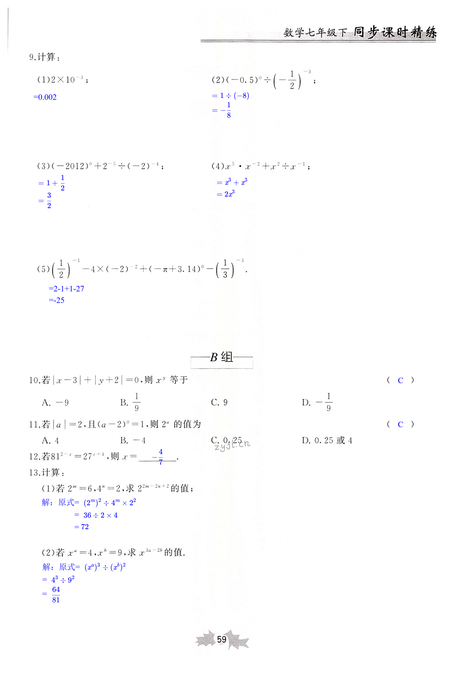 注:目前有些书本章节名称可能整理的还不是很完善,但都是按照顺序排列的,请同学们按照顺序仔细查找。练习册 2022年同步课时精练七年级数学下册浙教版 答案主要是用来给同学们做完题方便对答案用的,请勿直接抄袭。