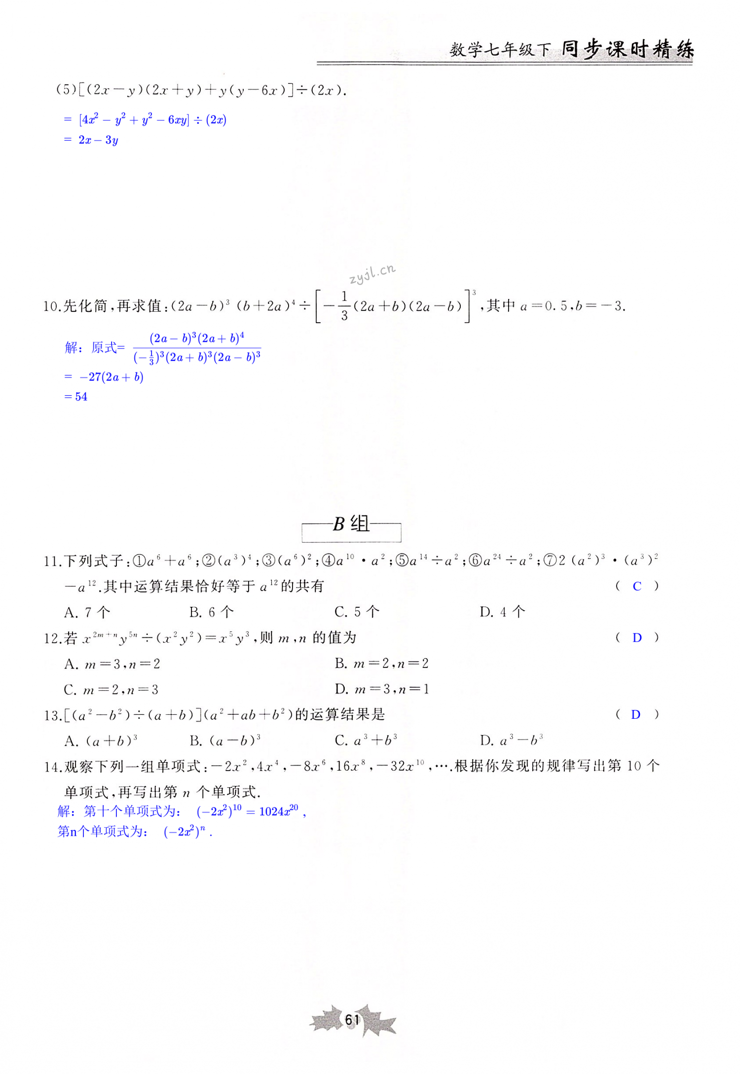 注:目前有些书本章节名称可能整理的还不是很完善,但都是按照顺序排列的,请同学们按照顺序仔细查找。练习册 2022年同步课时精练七年级数学下册浙教版 答案主要是用来给同学们做完题方便对答案用的,请勿直接抄袭。