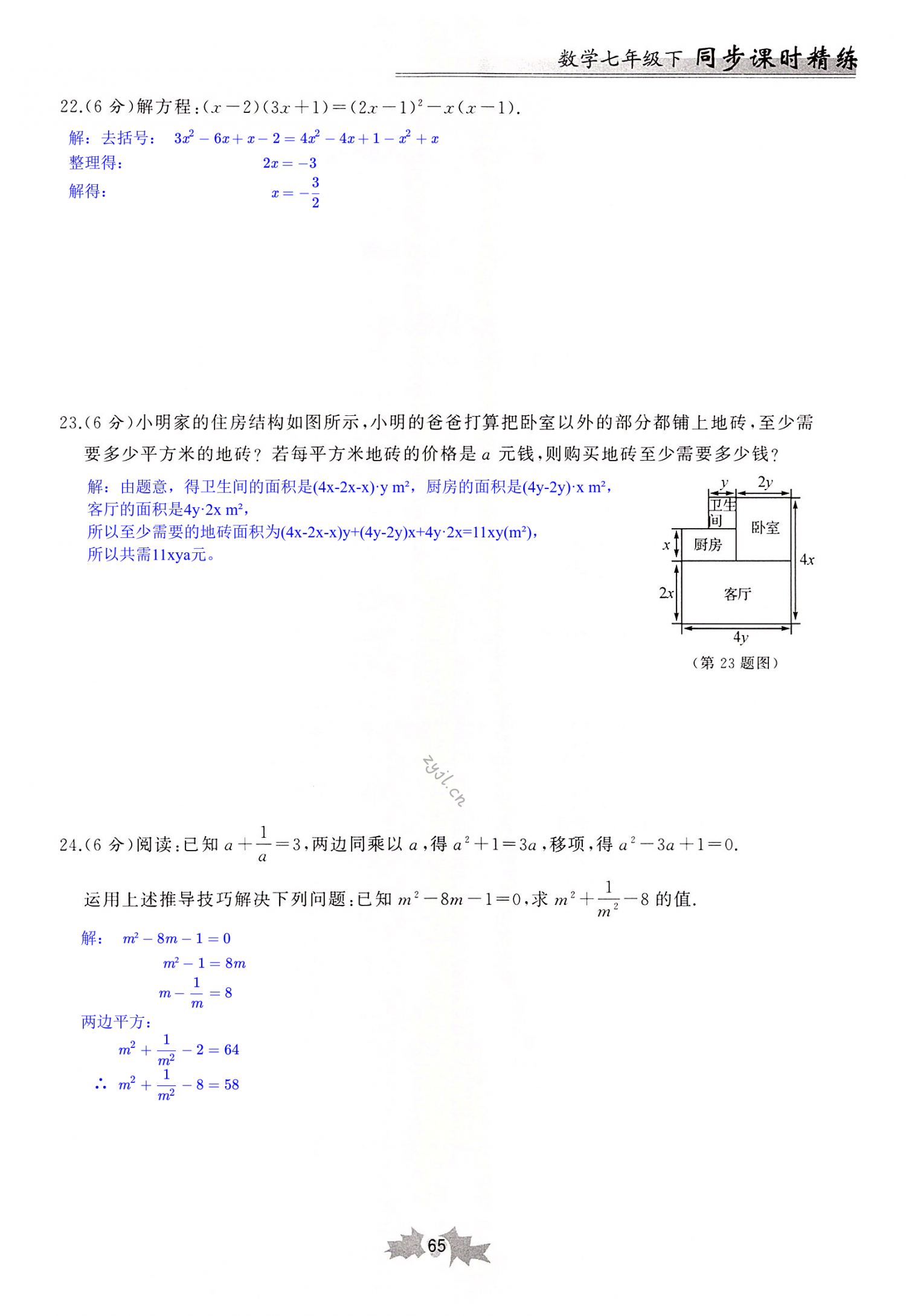 注:目前有些书本章节名称可能整理的还不是很完善,但都是按照顺序排列的,请同学们按照顺序仔细查找。练习册 2022年同步课时精练七年级数学下册浙教版 答案主要是用来给同学们做完题方便对答案用的,请勿直接抄袭。