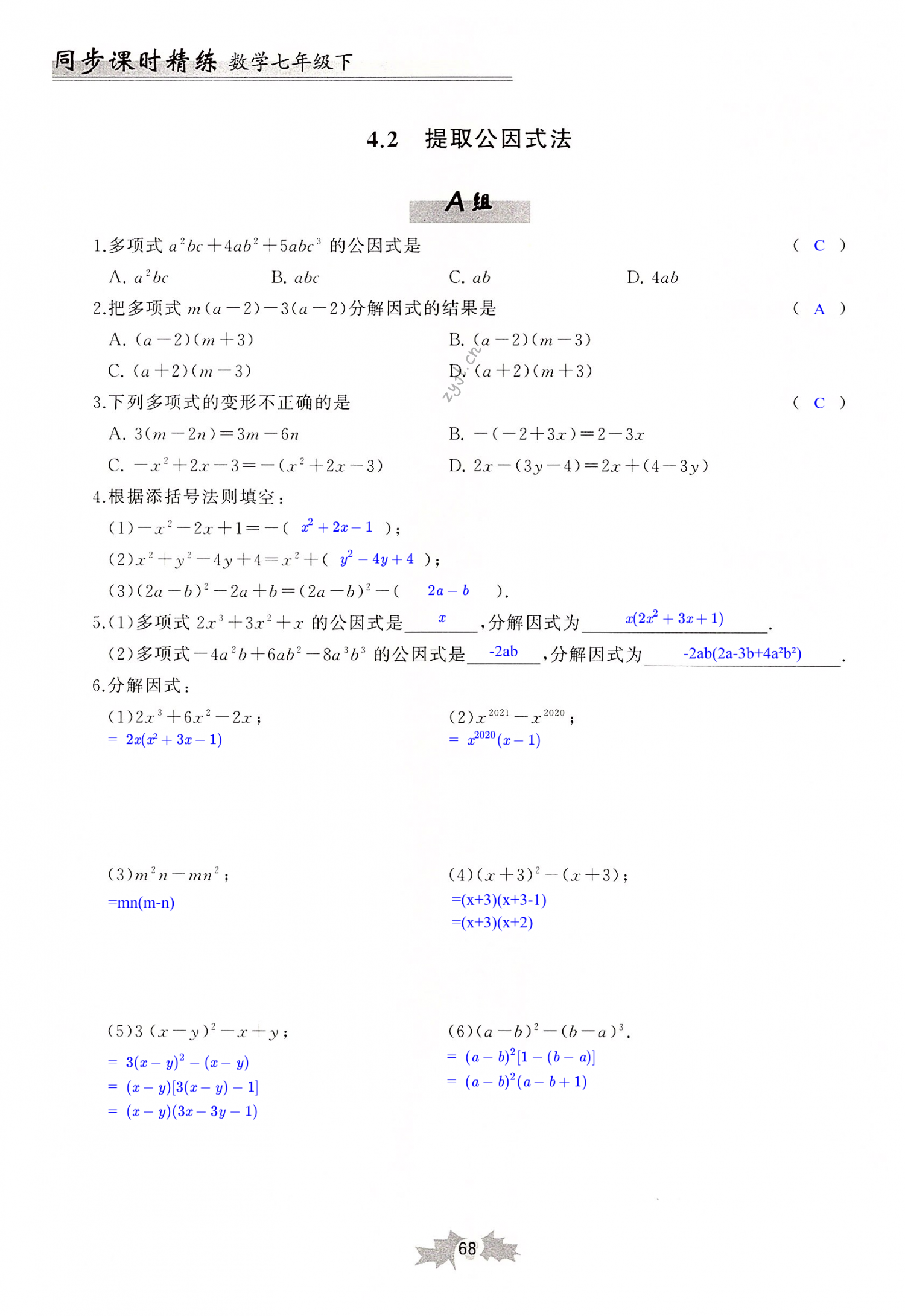 注:目前有些书本章节名称可能整理的还不是很完善,但都是按照顺序排列的,请同学们按照顺序仔细查找。练习册 2022年同步课时精练七年级数学下册浙教版 答案主要是用来给同学们做完题方便对答案用的,请勿直接抄袭。