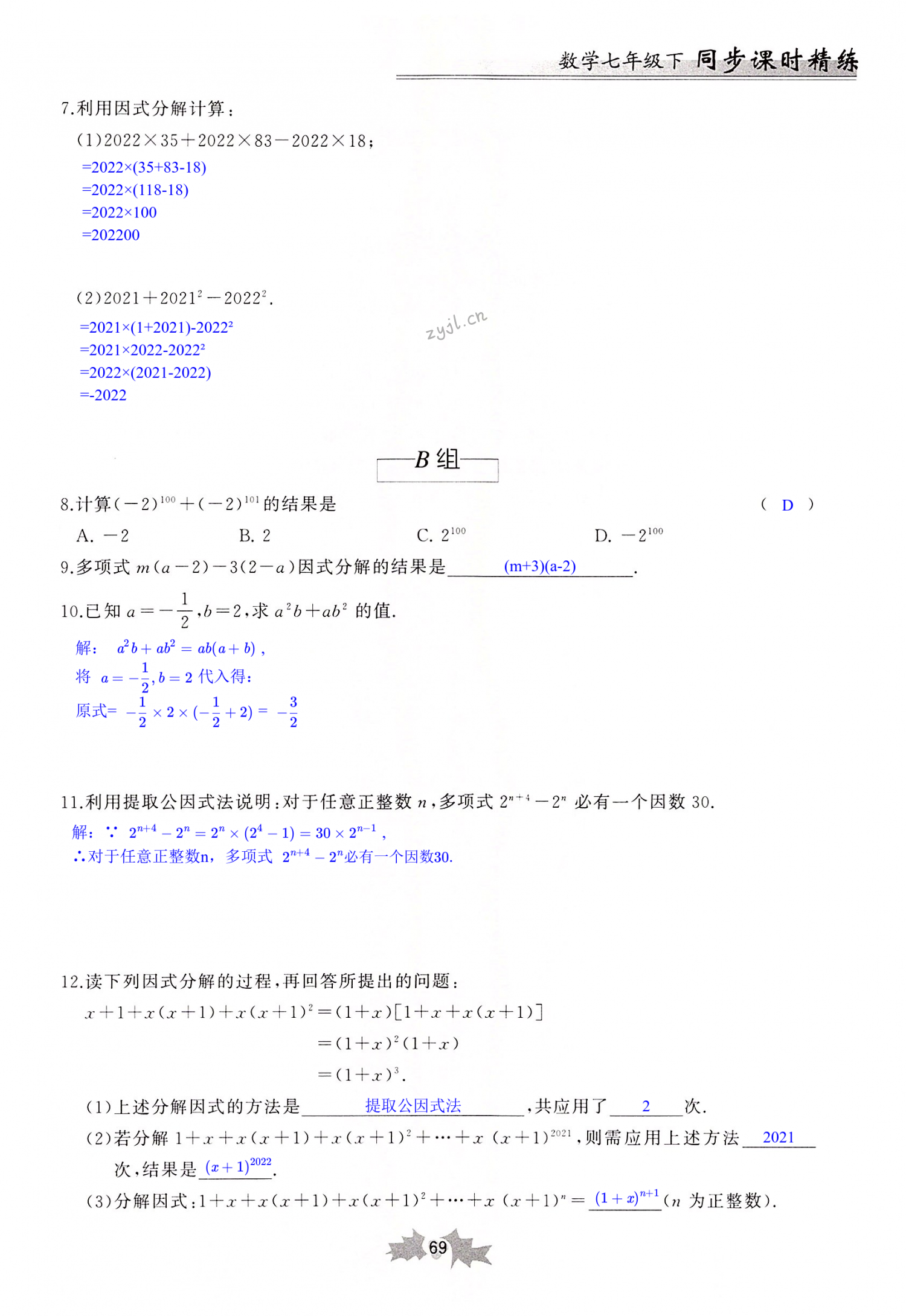注:目前有些书本章节名称可能整理的还不是很完善,但都是按照顺序排列的,请同学们按照顺序仔细查找。练习册 2022年同步课时精练七年级数学下册浙教版 答案主要是用来给同学们做完题方便对答案用的,请勿直接抄袭。