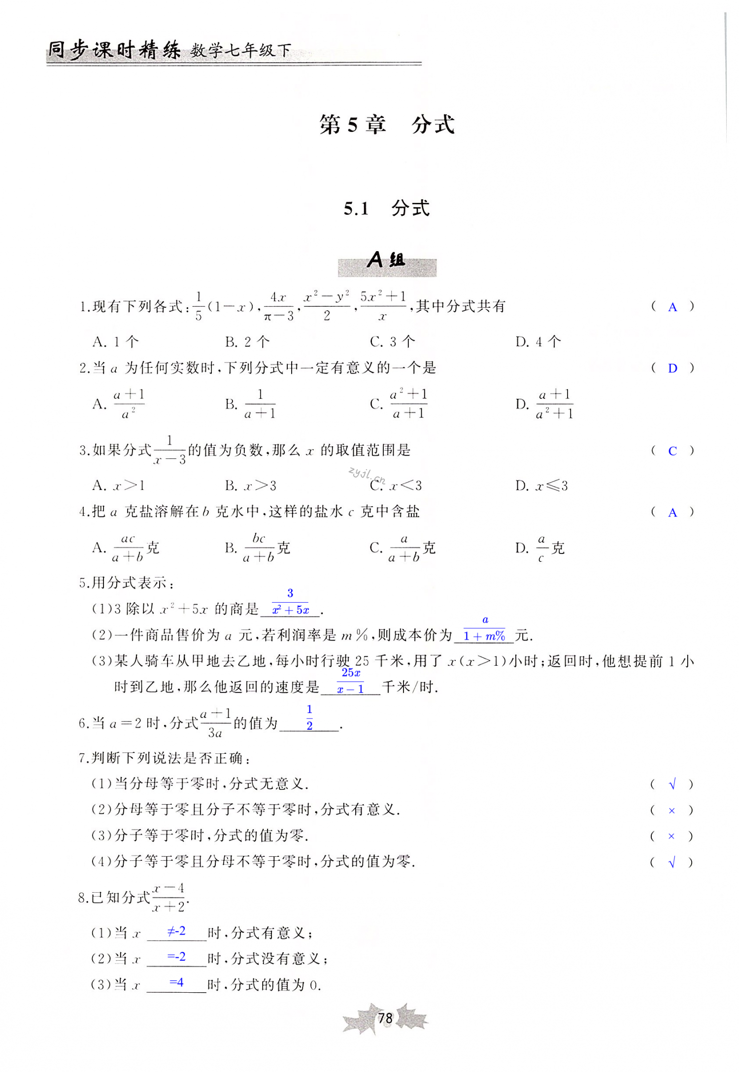 注:目前有些书本章节名称可能整理的还不是很完善,但都是按照顺序排列的,请同学们按照顺序仔细查找。练习册 2022年同步课时精练七年级数学下册浙教版 答案主要是用来给同学们做完题方便对答案用的,请勿直接抄袭。