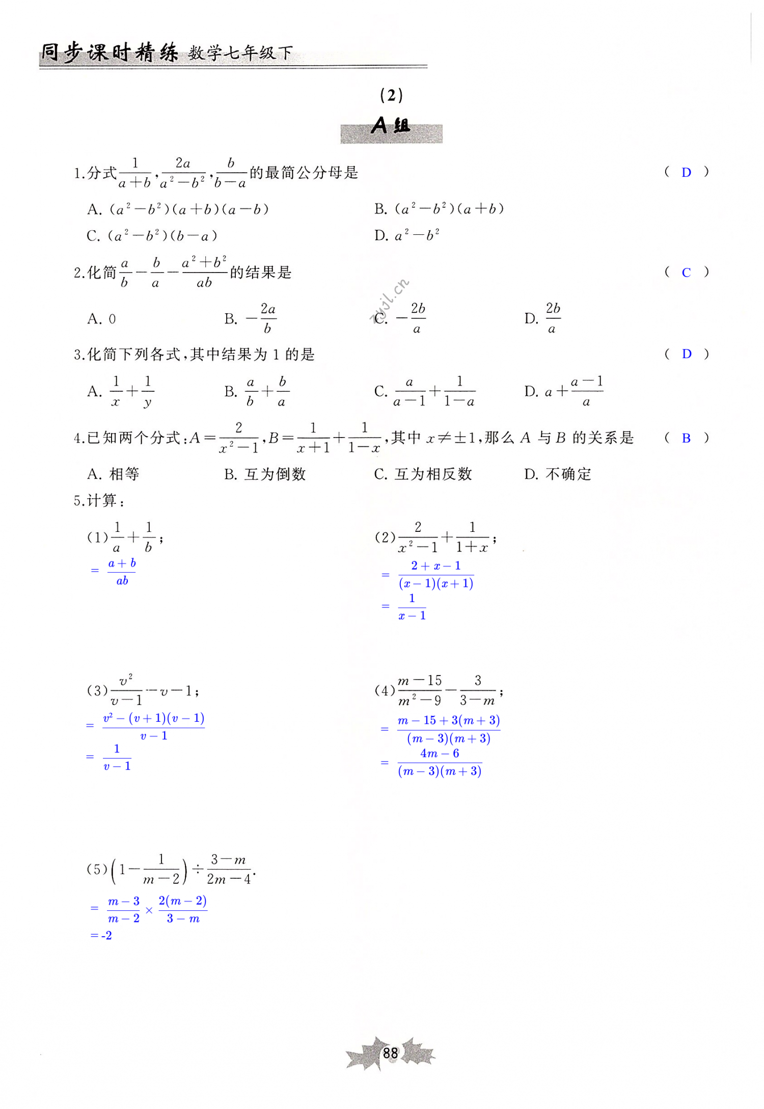 注:目前有些书本章节名称可能整理的还不是很完善,但都是按照顺序排列的,请同学们按照顺序仔细查找。练习册 2022年同步课时精练七年级数学下册浙教版 答案主要是用来给同学们做完题方便对答案用的,请勿直接抄袭。